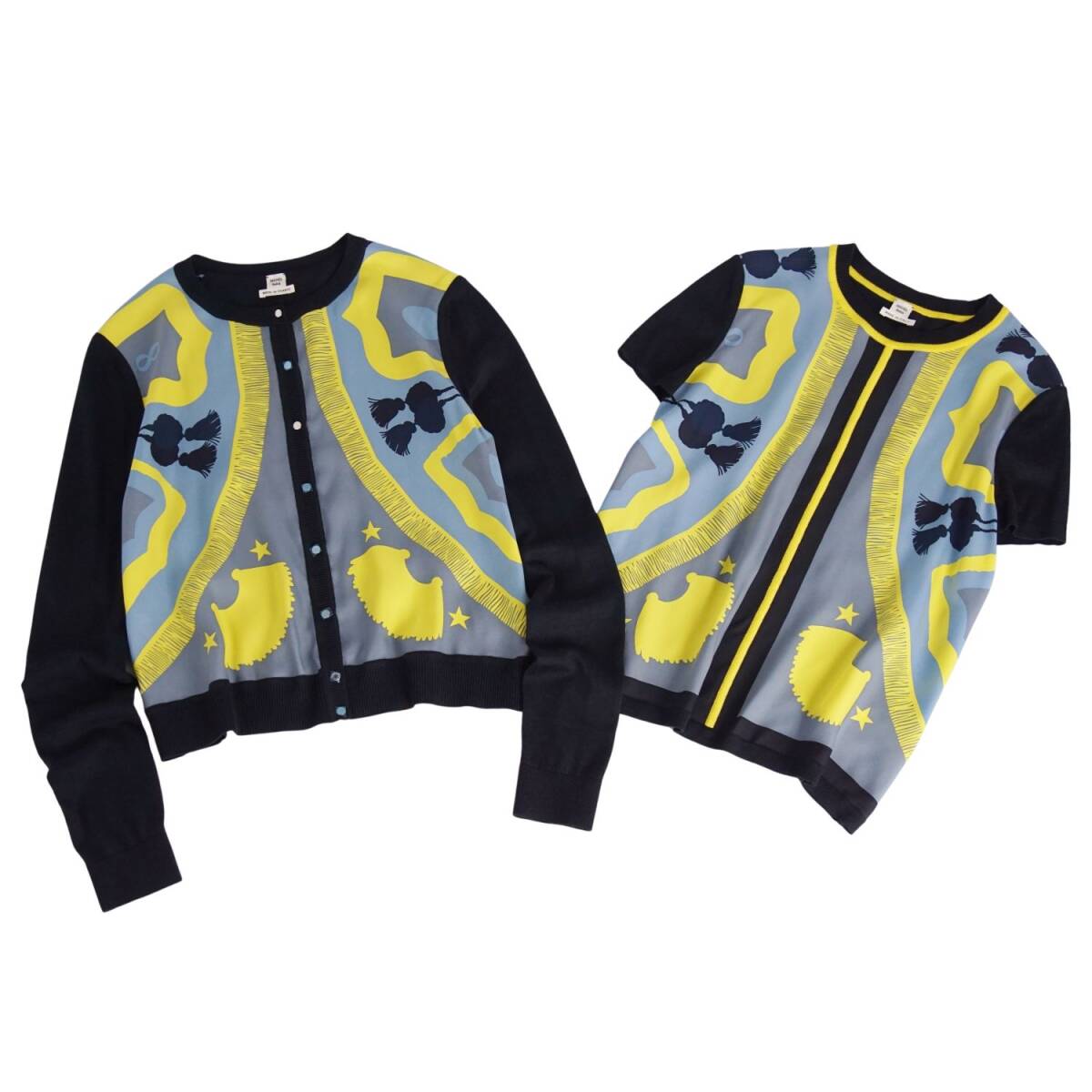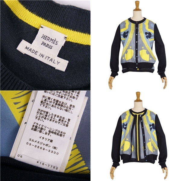 | 極美品 エルメス HERMES アンサンブル 21SS ニット カーディガン シルク切り替え トップス 40(M相当) マルチカラー |