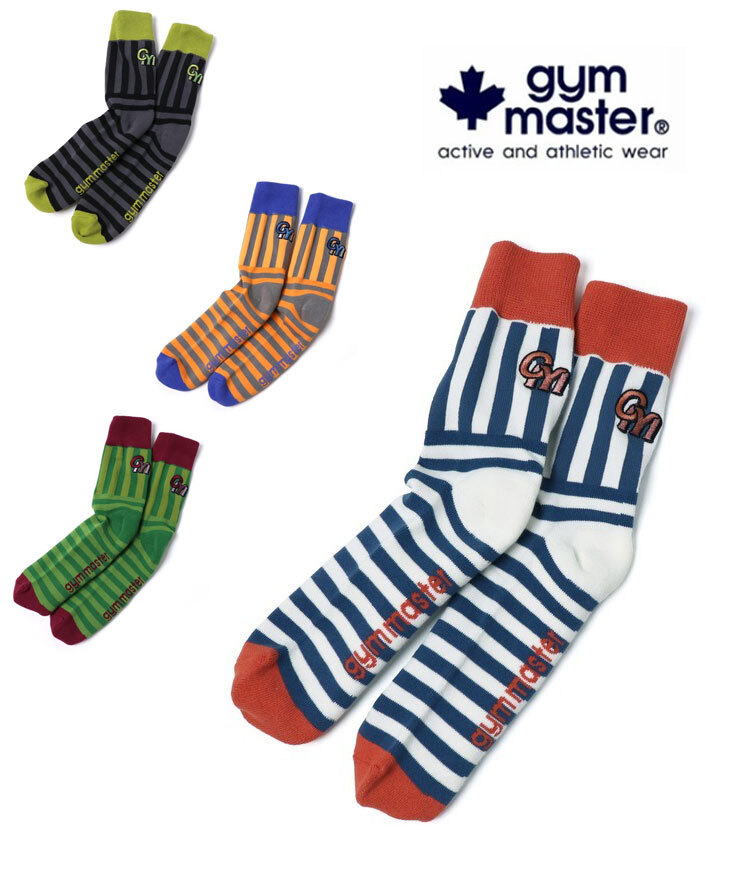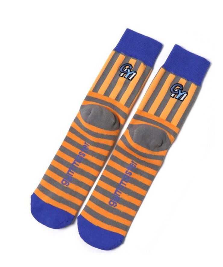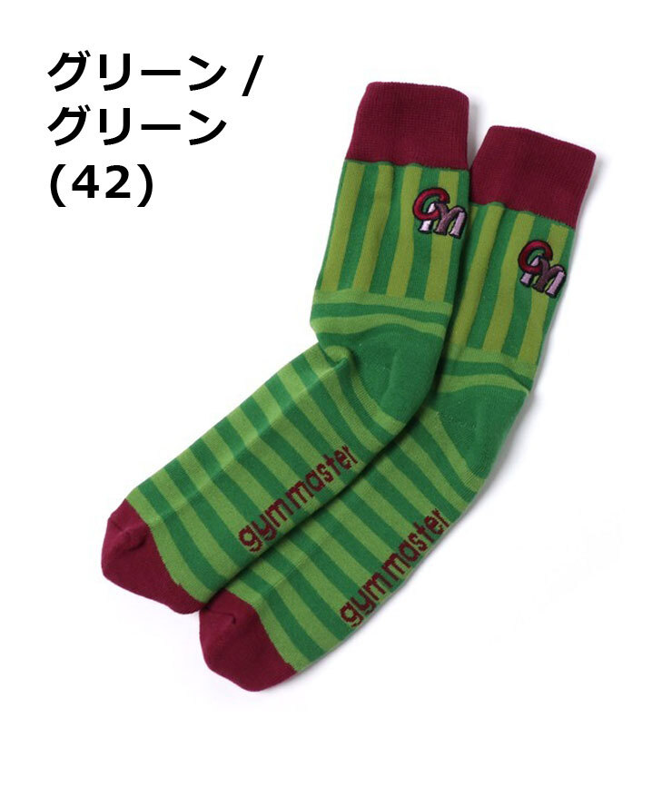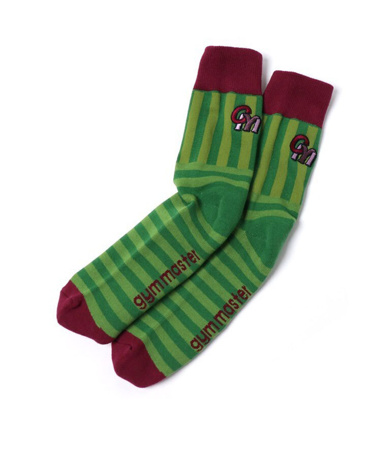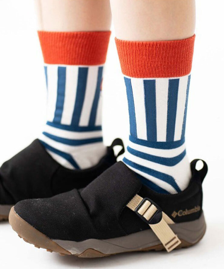 ストライプとボーダーの配色にロゴ刺繍が入ったポップな靴下。