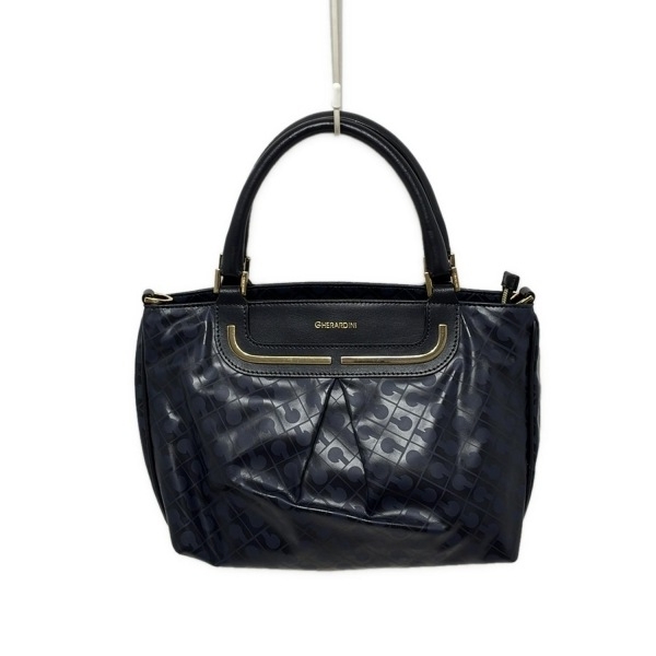 ゲラルディーニ GHERARDINI ハンドバッグ - レザー ダークネイビー×ネイビー 美品 バッグ