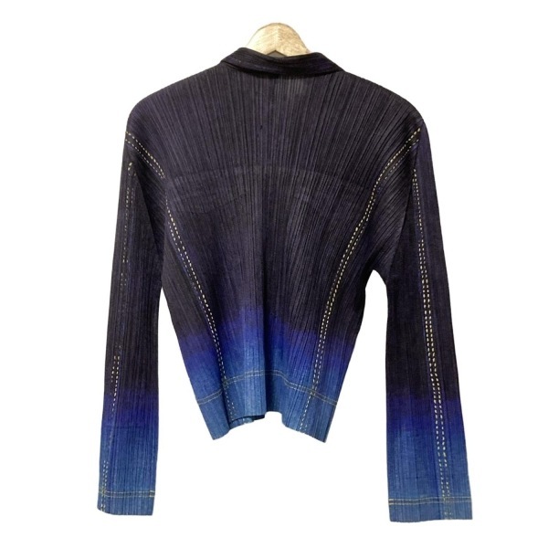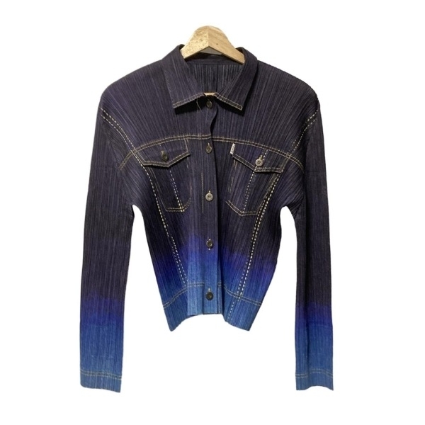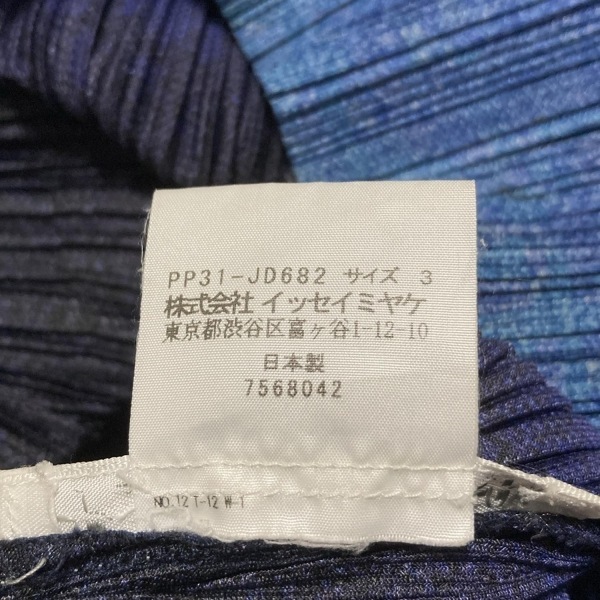 プリーツプリーズ PLEATS PLEASE 長袖シャツブラウス サイズ3 L - ネイビー×ブルー レディース プリーツ トップス