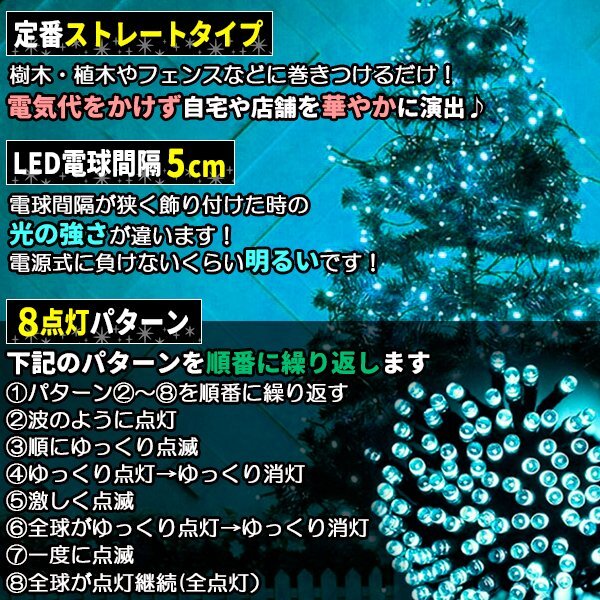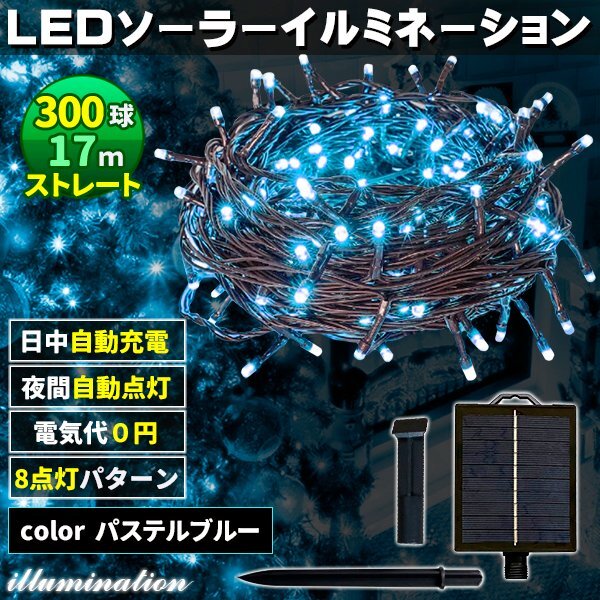 ソーラー イルミネーション 屋外 クリスマス ストレート 屋外用 イルミネーションライト 300球 パステルブルー