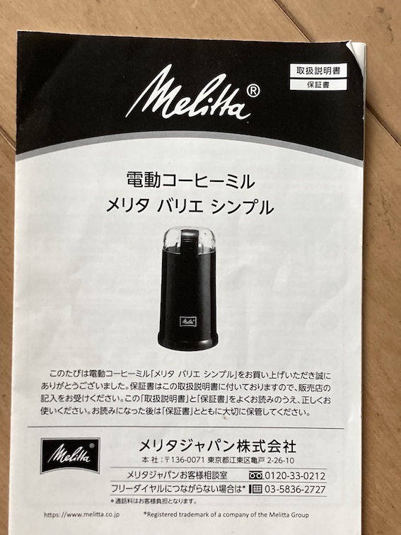 ほぼ未使用!定価4180円!デンドウコーヒーミルメリタバリエシンプル★動作確認済み!クリーニングブラシ付き+取説付き