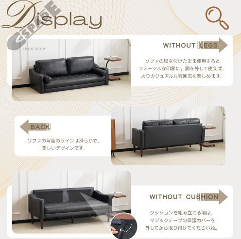 【国内発送】 ソファー 3人掛け カウチソファ リビングソファ 肘掛け付き 枕付き おしゃれ PUレザータイプ お掃除ロボット通れる取り外