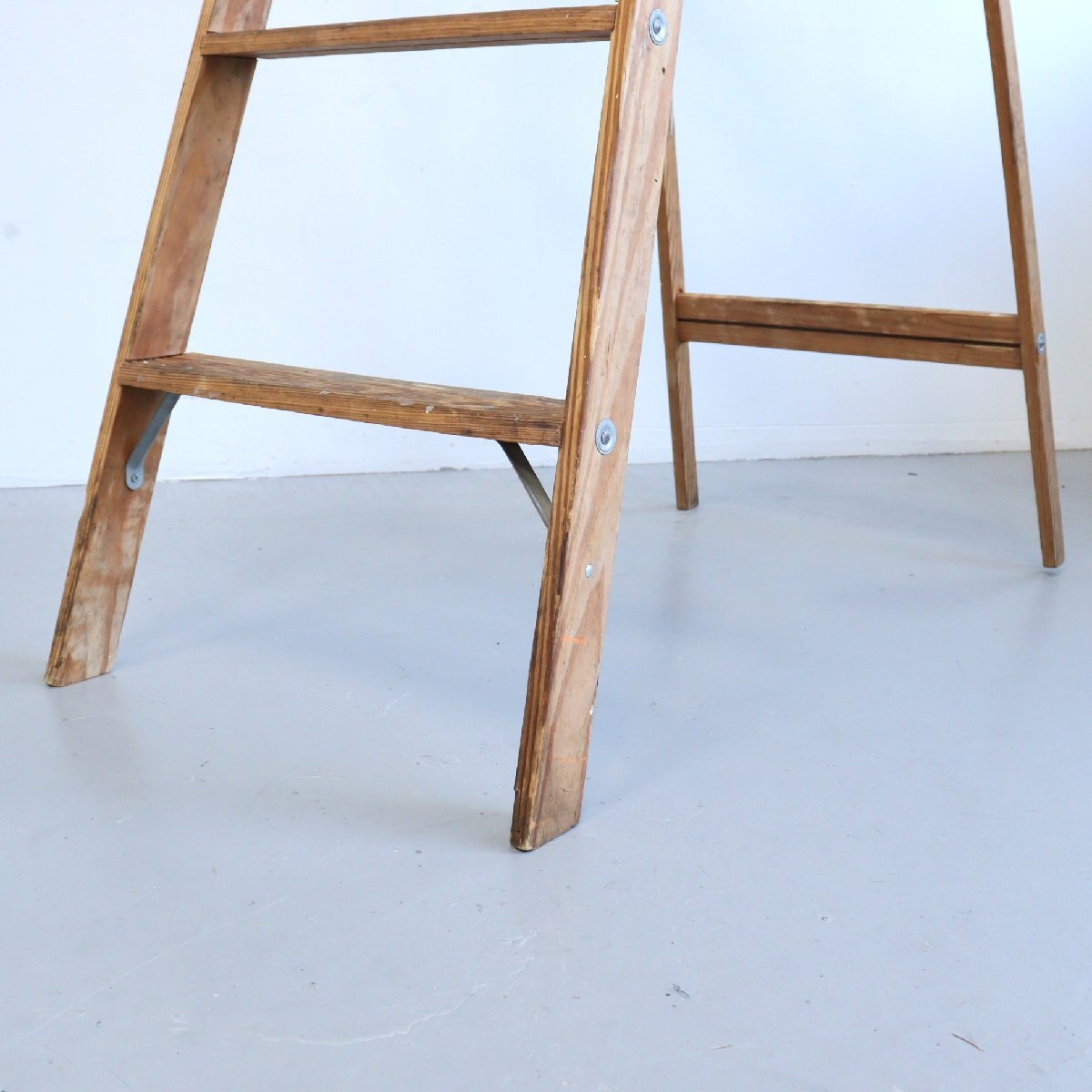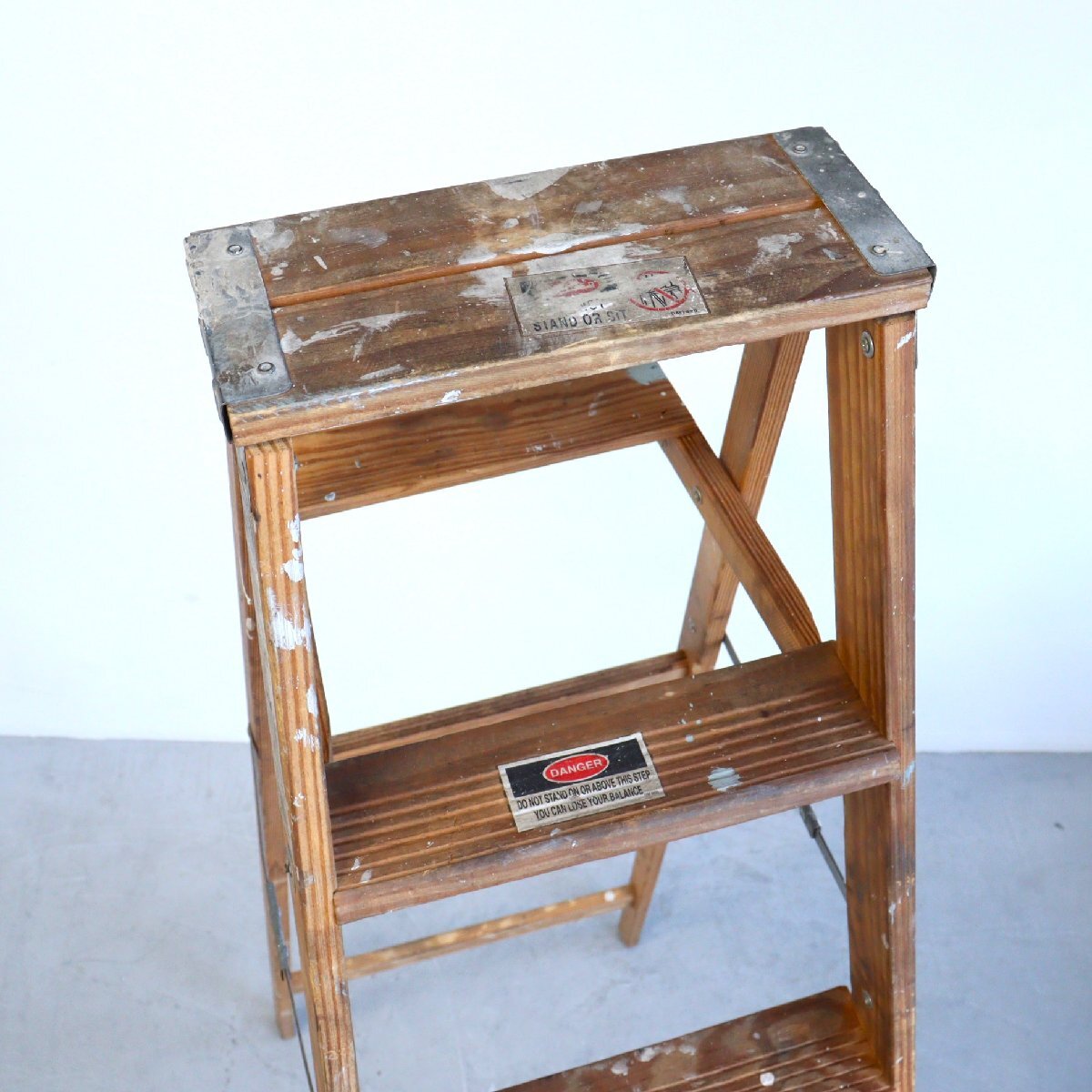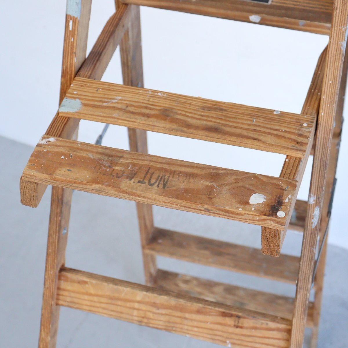 | コンディション condition | キズや小さなカケ、木の削れ、小さな木割れ、多少のきしみ、塗料の跡、落ちない汚れ、多少のぐらつきなど経年による劣化があります。 ステップを踏み台にしても大丈夫ですが、5,6段目へ登ることはお控え下さい。 万が一の場合は保証しかねます。 作業などでの使用は控え、ディスプレイ品としてお考え下さい。 ※ペンキ板の先部分が引っ掛かりやすくまた開閉がきつくなっています。(画像9枚目) 詳細は画像をご覧ください。 |