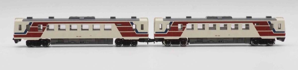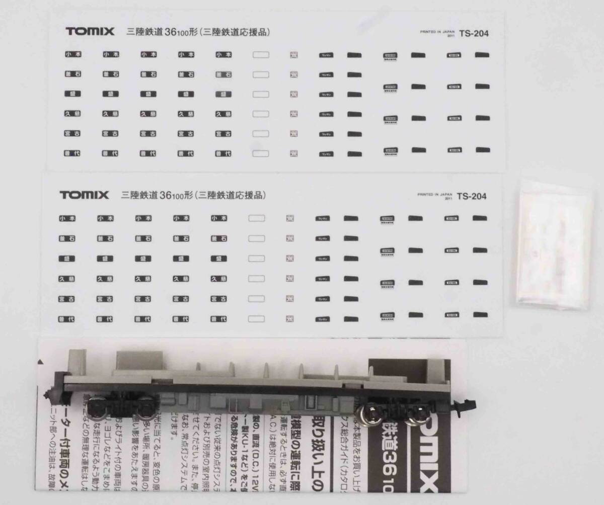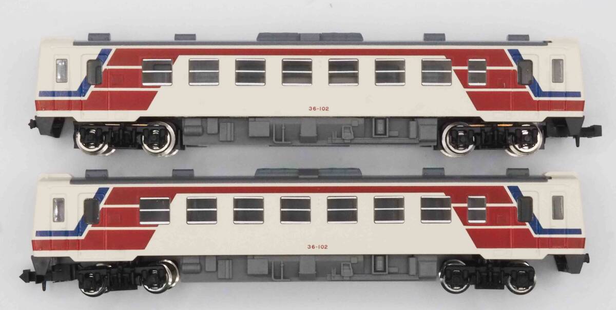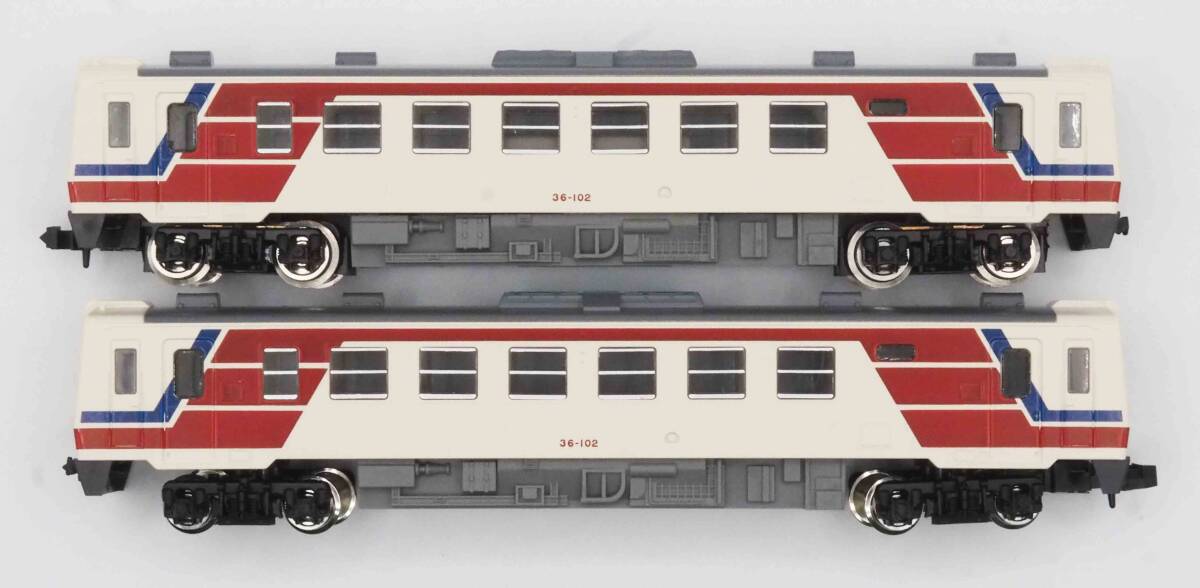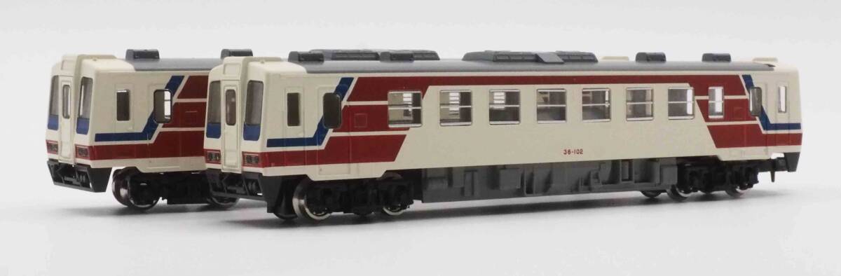 TOMIX 三陸鉄道36 100形ディーゼルカー 2両動力化 TS-204です。2両購入し、別売の動力化ユニットにより走行可能としたものです。そのため2両の車番は同じです。動力は問題ありません。この製品は点灯しない仕様です。動力化により不要となった床ユニットとマーク部品が付属します。