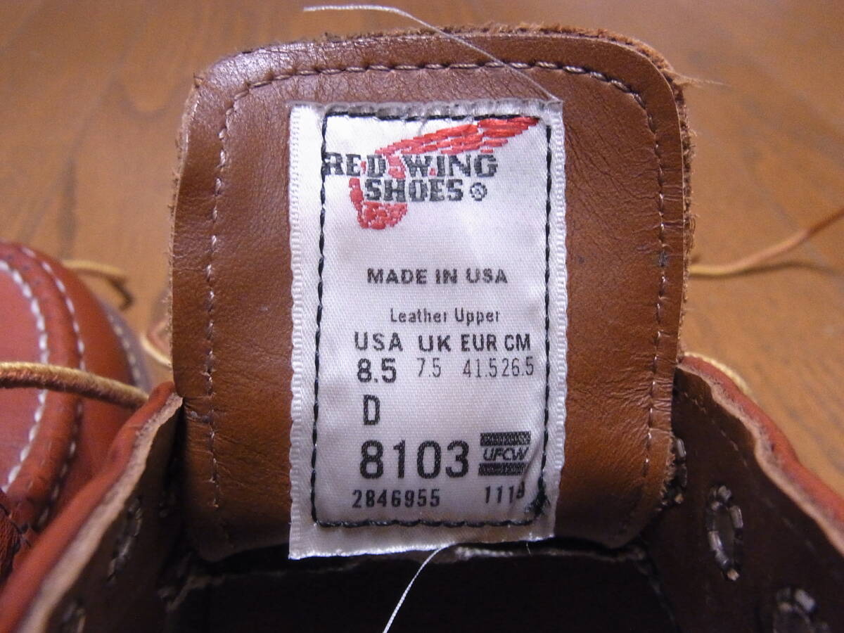 2019年/RED WING/レッドウィング/8103/Work Oxford/ワークオックスフォード/8.5D/26.5cm