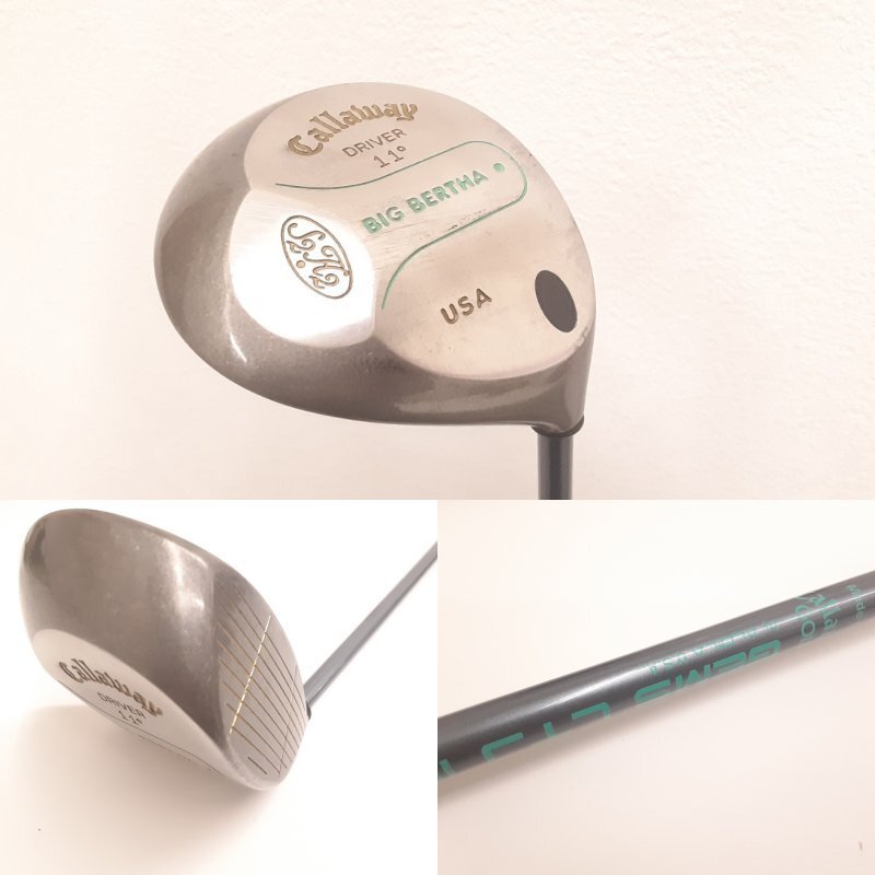 全て使用済み、キズ・スレあり。 バッグ底面付近の革が白くなっています。 バッグの革部には、スレ・小傷あります。 パターはSLOTLINE製です。 ドライバー、ウッドはキャロウェイ製です。 | ||||