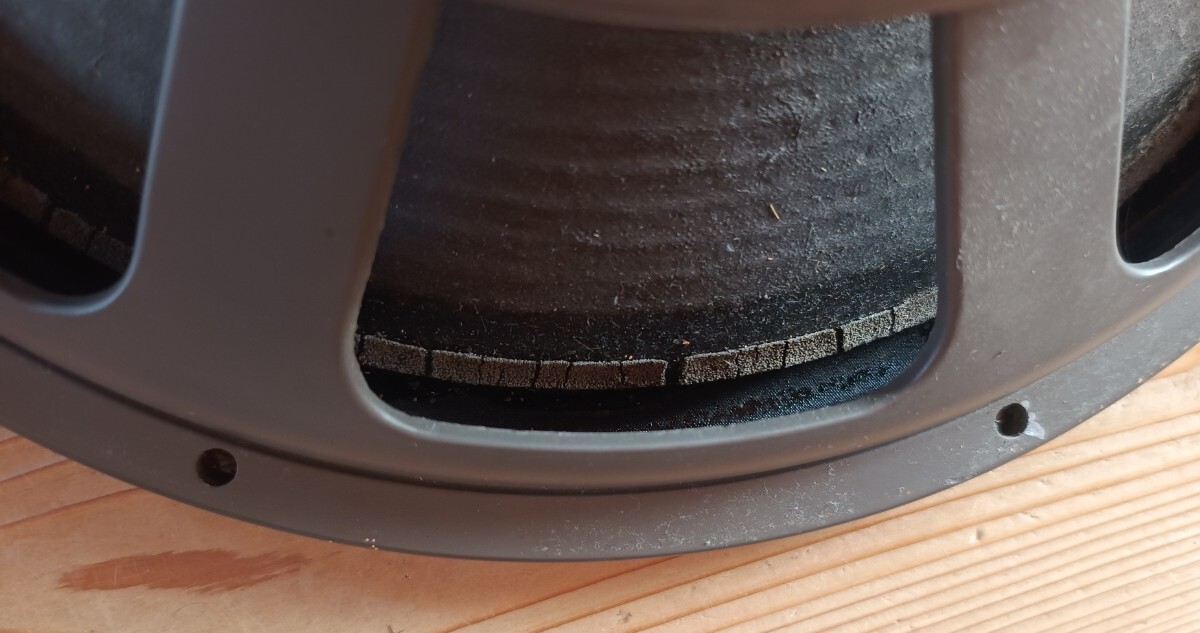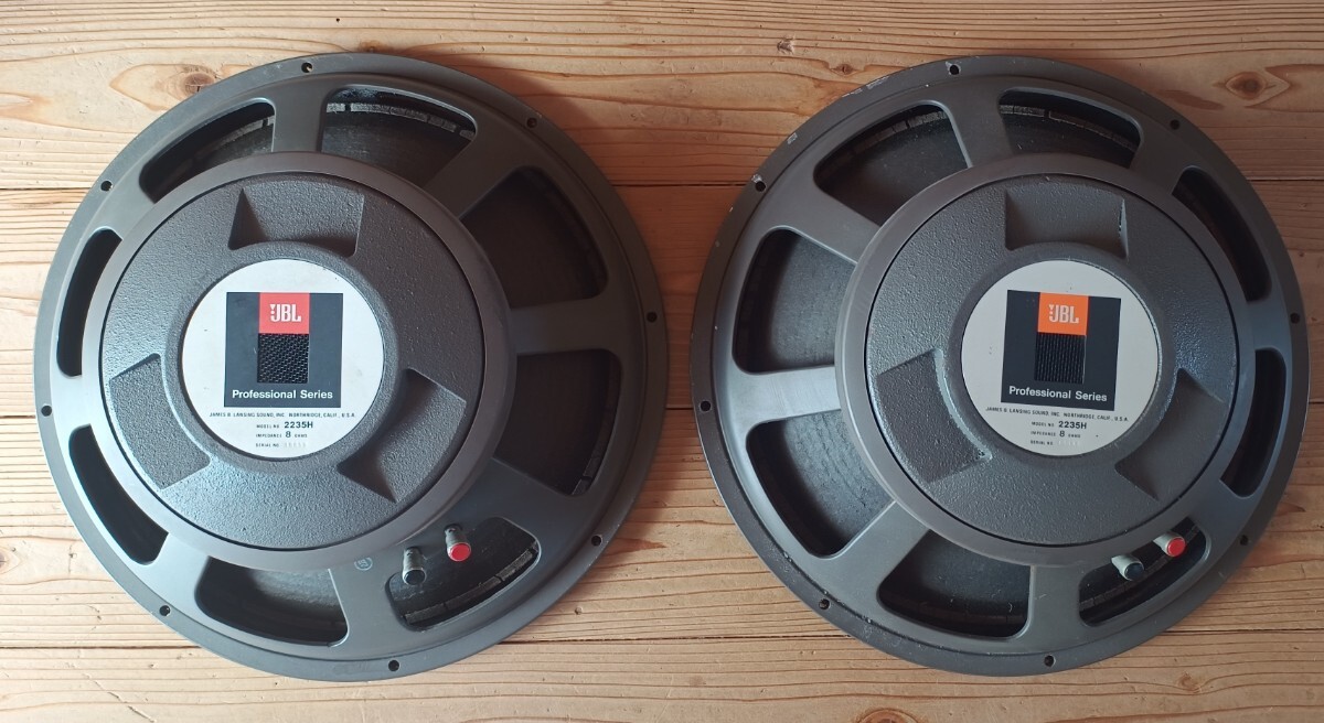 JBL4430から取り外しの2235Hペア。最近まで使用していました。エッジに問題はありません。エッジ裏側の薄いカバー材のようなものがヒビ割れています(画像5.6)。低音の歪等は感じませんでした。配送は宅急便easy160サイズ。