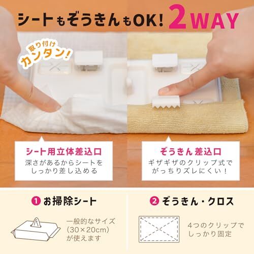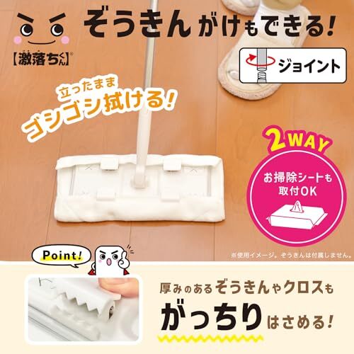 「レック 激落ちくん クリップ式 ワイパー (ジョイント)/ぞうきん・クロスもOK/ガッチリはさめる/床に密着 立体クッション」▼4903320164055▼(商品説明)ジョイント・ホワイト 62~110cm S01210・・Style:ジョイント・お掃除シートだけではなく、ぞうきんやクロスも取り付けられるフロアワイパーです。・軽量・やわらか素材の立体クッションで、床に密着して汚れをとります。・がっちりはさめるクリップ式なので、ぞうきんやクロスでもゴシゴシ拭ける・押し込みやすく指先を痛めにくい立体差込口。壁に立てかけても倒れにくい滑り止め付きグリップです。・サイズ:25×10×110cm説明 ●清掃用シートと、クロス・ぞうきんの両方お使い頂ける、たいへん便利なワイパーです。 ●これ1本で2役 シートと雑巾、両方使えます。 ●クリップに挟んで、ぞうきん・クロスをしっかり固定でき、シートは立体型差し込み口に押し込んで使用できます。 ●ヘッド部分は、立体クッションになっているので床に密着しやすいです。 ●通常の使い捨てシートだけでなく、雑巾やクロスを挟むことができるので、しつこい汚れも水拭きでしっかりと落とすことができます。 ●取り付けるシート(別売)は各社共通、ウエットシート、ドライシートどちらも対応できます。