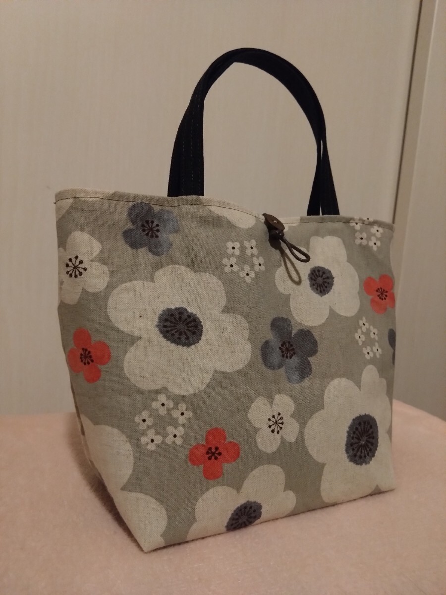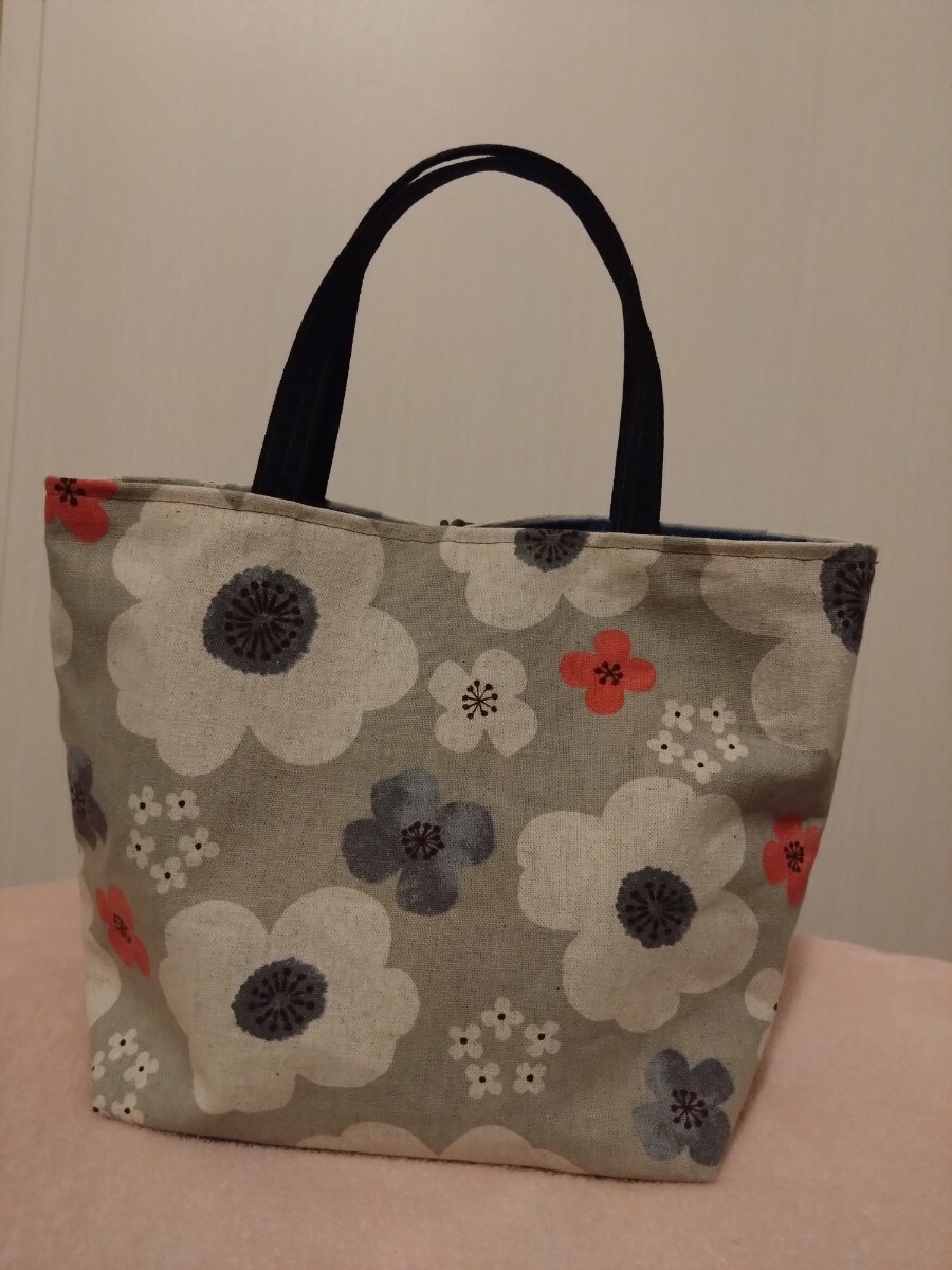 大好きなハーフリネンとデニ厶を組合せて小さなトートを作りました。ちょっと北欧風な大きめ花柄です♪ランチバックにいかがですか?