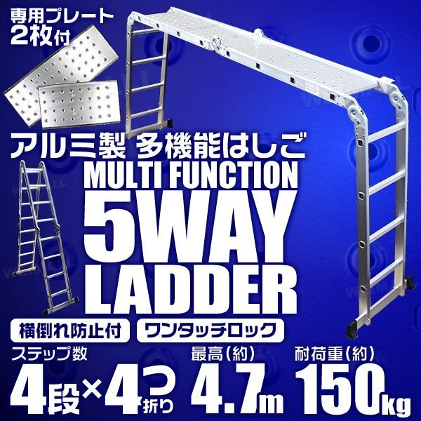| 多機能プレート付 5WAYアルミ梯子 (はしご⇔脚立⇔足場) | ||