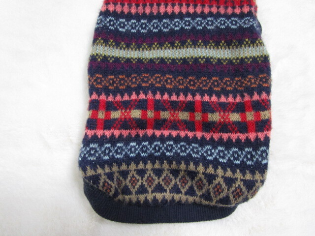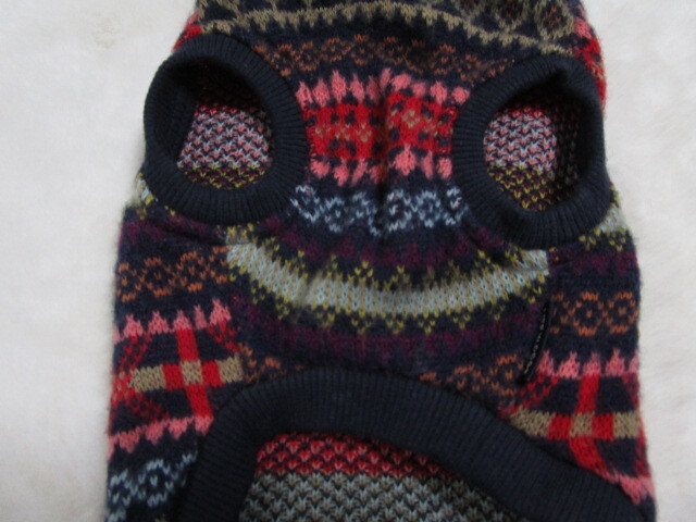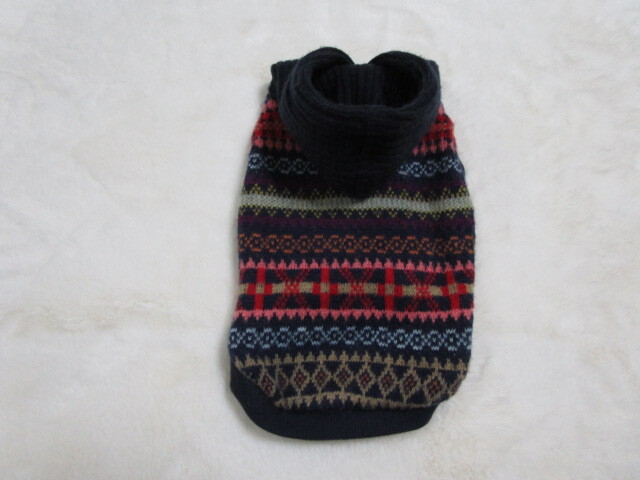 犬と生活 L.W.D 1号 胴回り33㎝ ジャガードニットパーカー ネイビー系 中古