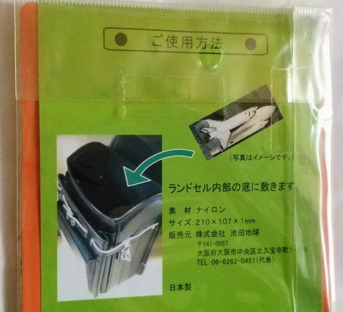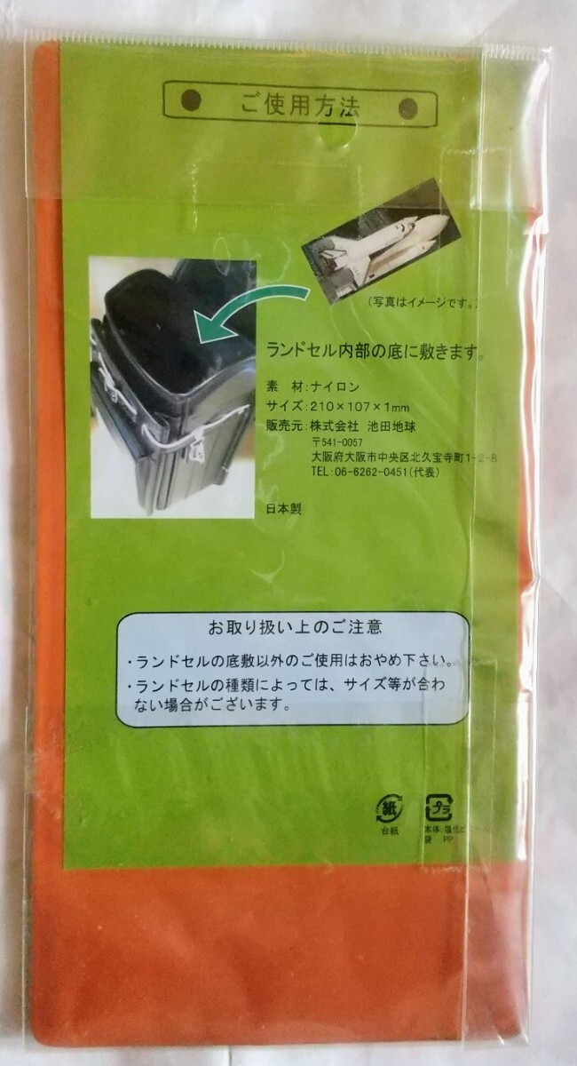 新品未使用未開封です。ランドセルの内部の底に敷き、教材の保護や底板の汚れを防ぎます。約210×107×1mm ナイロン素材です。定形郵便110円で発送します。