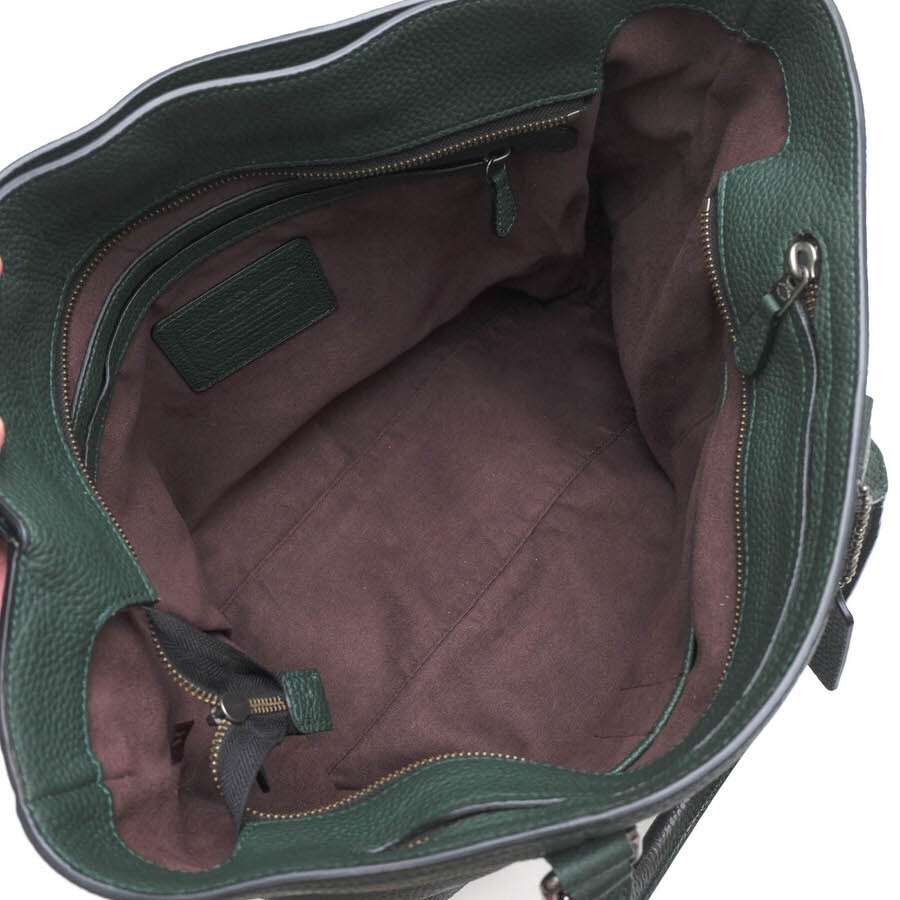 | 柔らかくしなやかな手触りが魅力のペブルレザーを贅沢に使用したCOACHの「メトロポリタン トート」。素材特有の自然なシボは、使い込むほどに表情を増し、表面にキズが目立ちにくいという実用性も備えています。メイン収納はジップ式でしっかりと閉じられ、小物の整理に便利なファスナーポケットやスマートフォンポケット、多機能ポケットを装備。 |