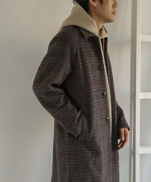 キーワード:ステンカラーコート コート メンズ チェック ロング丈 秋 冬