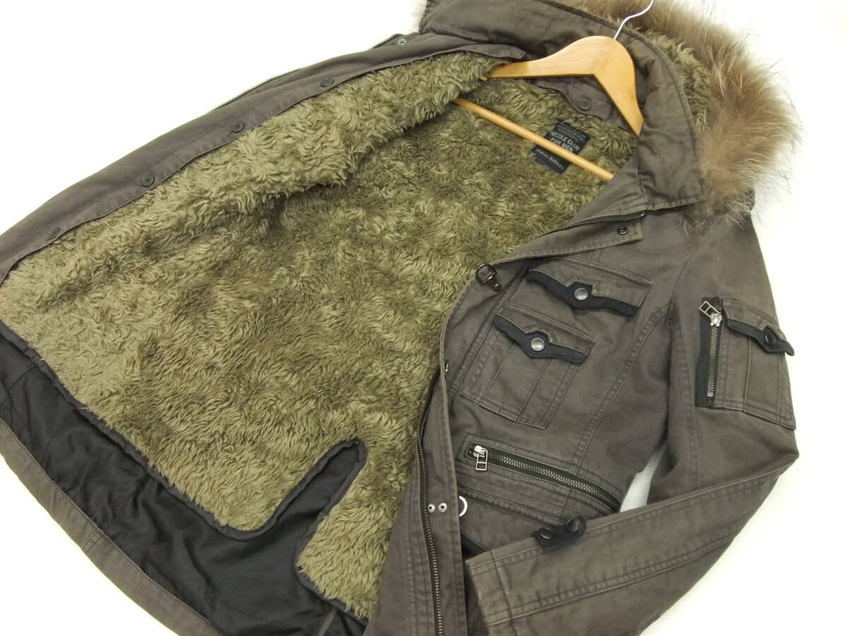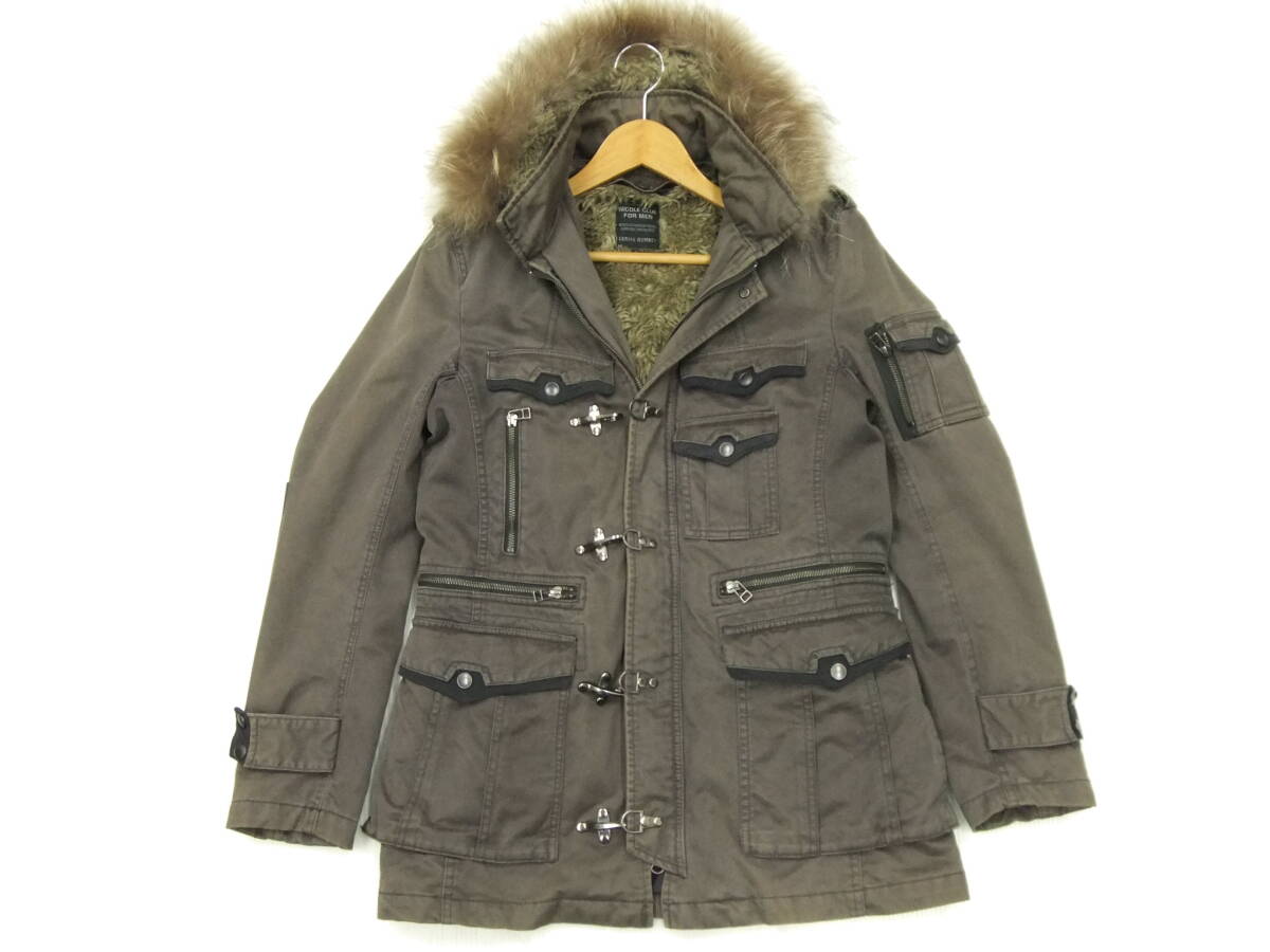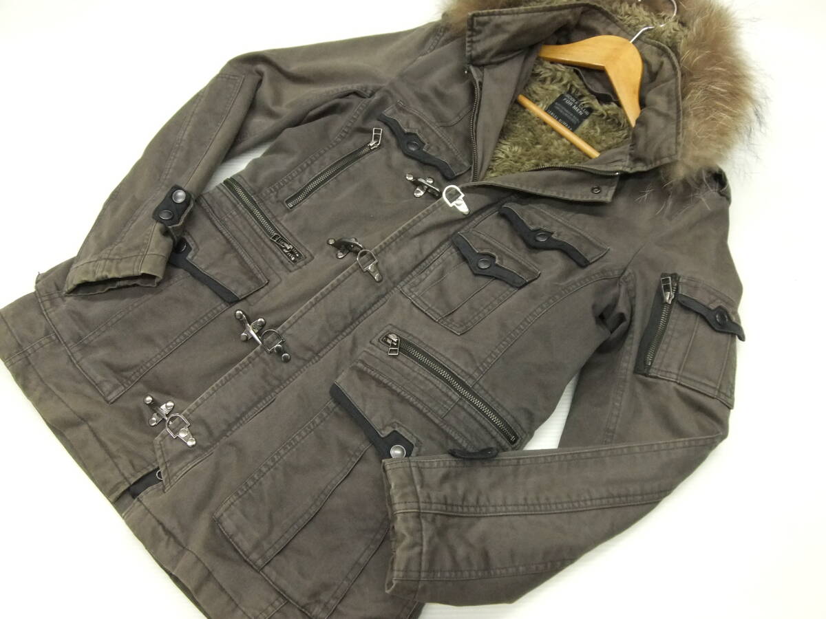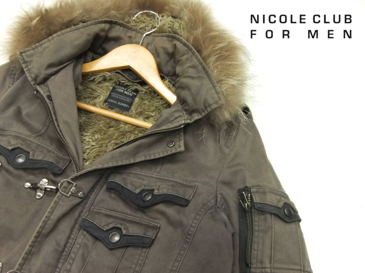 ■NICOLE CLUB FOR MEN■ミリタリー風ジャケット カーキ 46 ラクーンファー ライナー付き ボア ジップパーカー ニコルクラブフォーメン