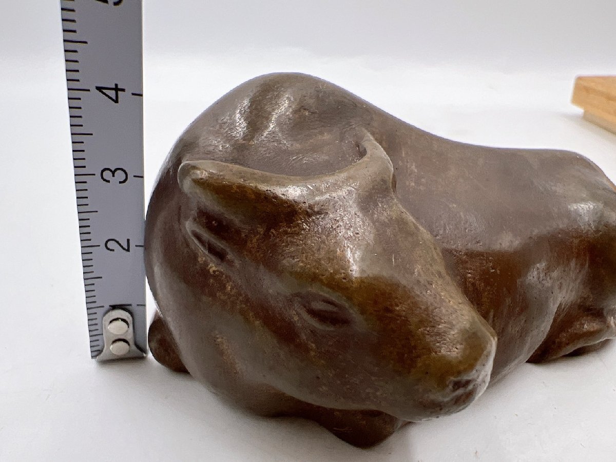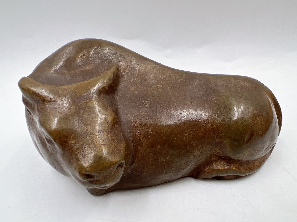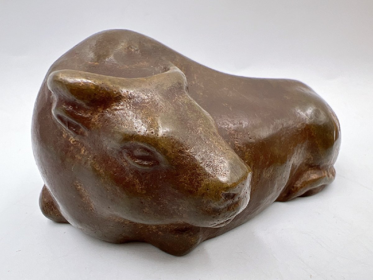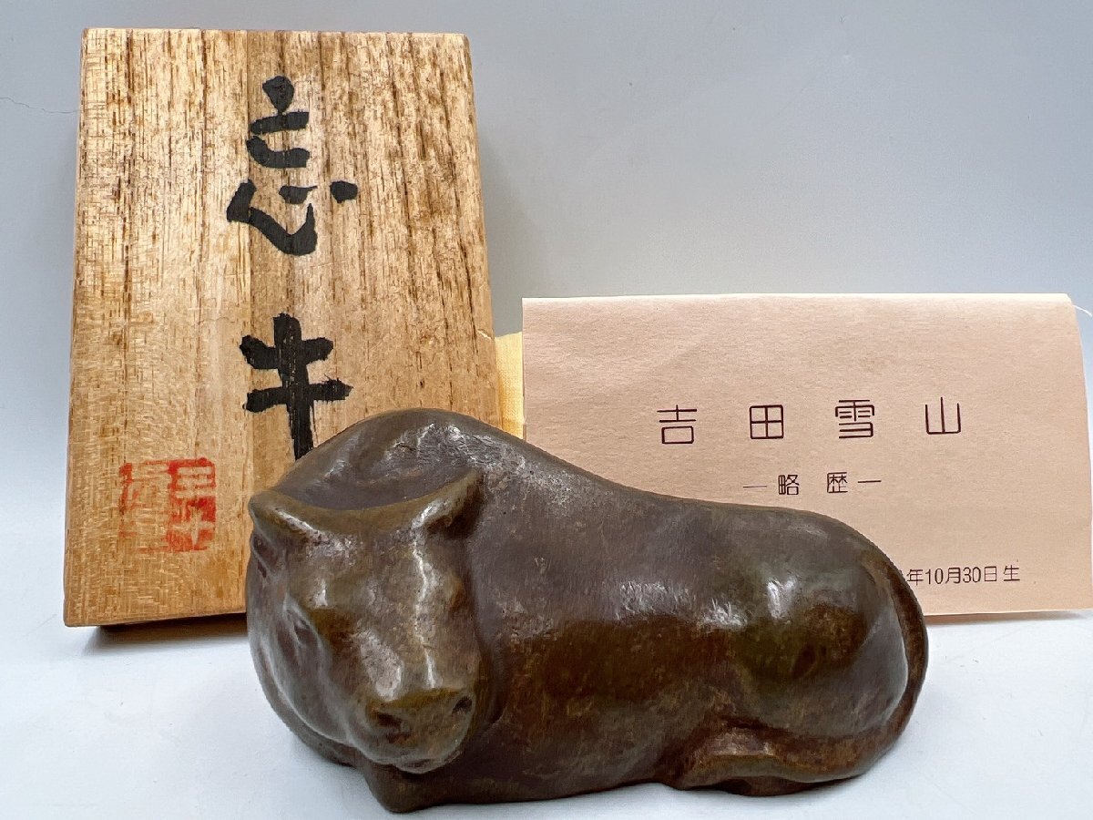 1円 吉田雪山 置物 忘牛 714g 本物保証 石川県七尾市 近代彫刻家秀逸作 ブロンズ 牛置物 未使用保管品【AN012】