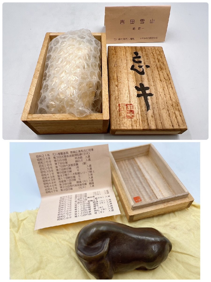 ■本物保証!石川県七尾市出身の彫刻家で、日展や日彫展で活躍し多数の受賞歴を誇るほか、当時の皇太子(平成天皇、現在の上皇陛下)への献上作品を制作するなどした【吉田雪山】作