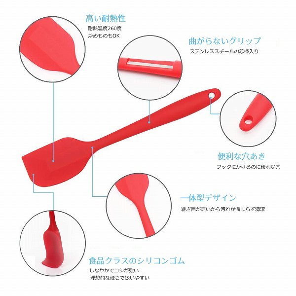 ・食品FDA認証取得済、プロも愛用するシリコン製ゴムベラ。用途によって使い分けできる3種類セットです。