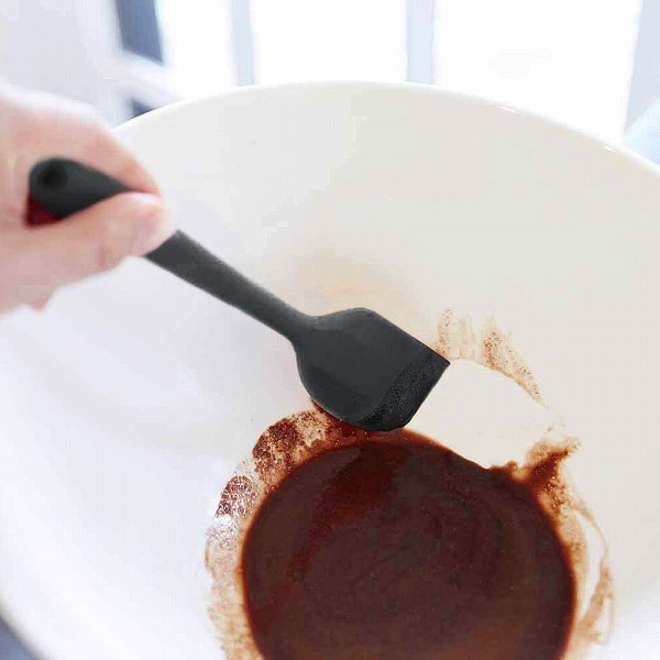 ・先端は弾力性・柔軟性の高い食品級シリコンゴム。コシの強いソフトな素材で、硬めの生地もしっかりと練ることができ、調理器具を傷つけずにソースやクリームを残さずすくい取れます。