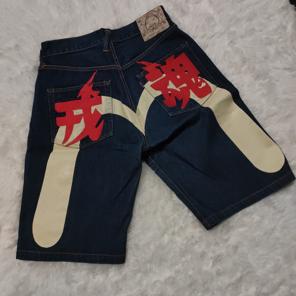 【超希少】 EVISU エヴィス ハーフパンツ 白 デニムパンツ lot2001 w33 大黒 戎魂