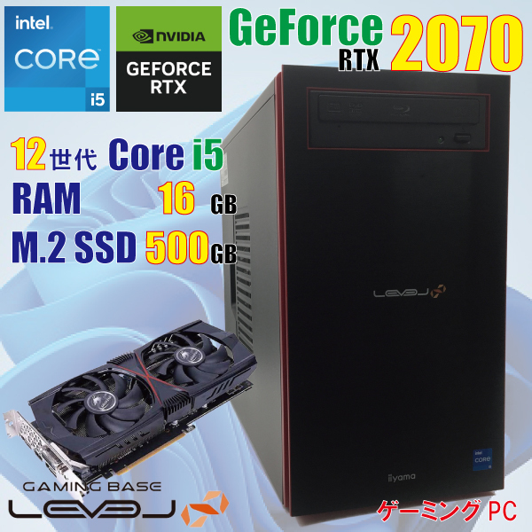 ゲーミングPC / 12世代 i5 12400 / 16GB / RTX 2070 / M.2 500GB / ブルーレイ / Windows11 / 動画編集 / 高年式 / iiyama LEVEL∞