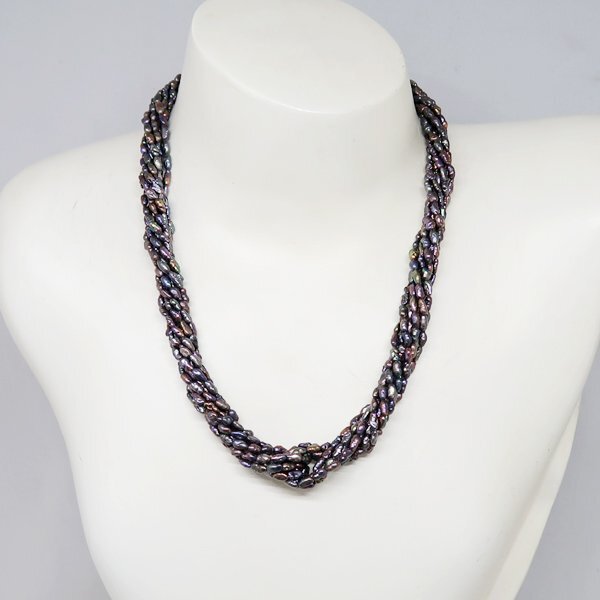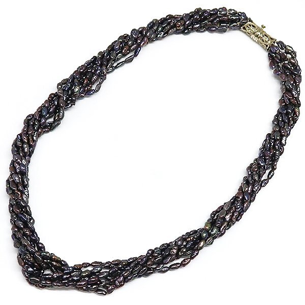 DKG★送料無料 PNC17★美品 ブラック ケシパール 8連 ネックレス 50cm 黒 真珠 黒真珠 パールネックレス ブラックパール 黒真珠ネックレス