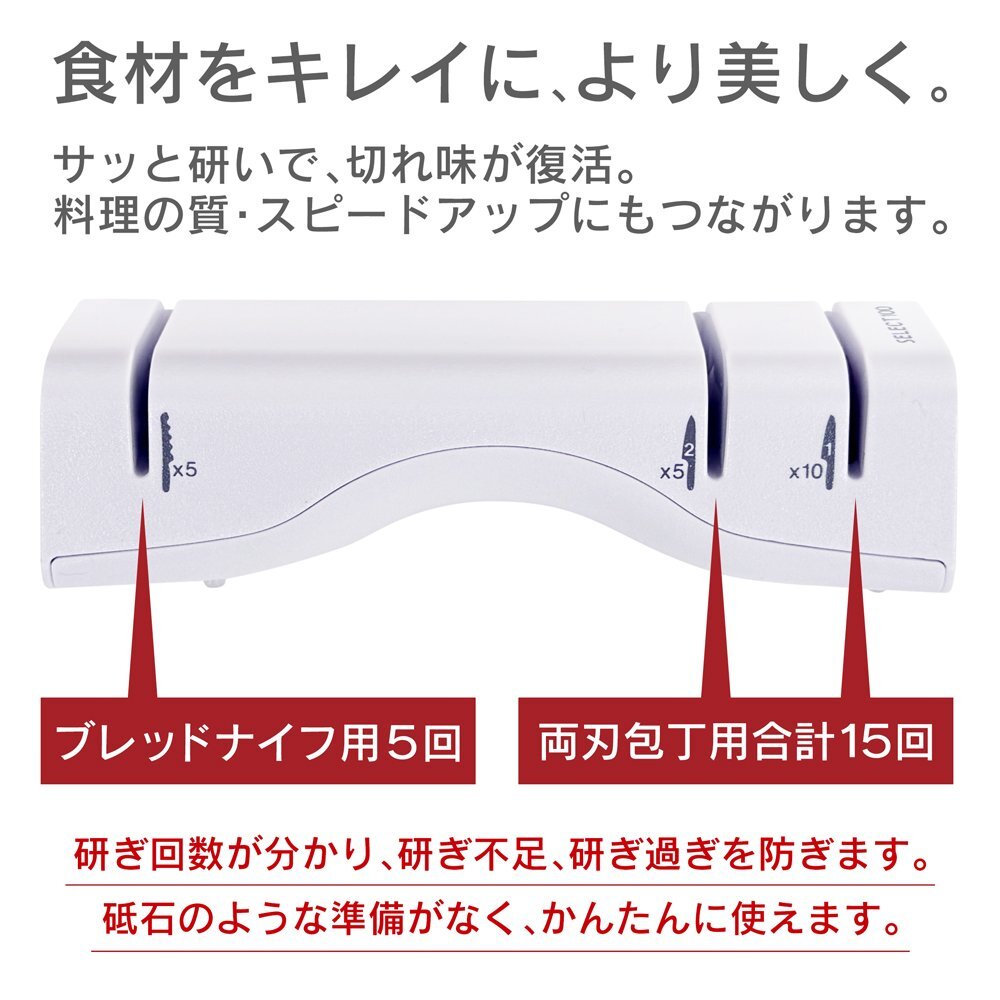 | 両刃包丁もパン切り包丁もラクラク研げる 左利きでも安心、安全&簡単設計 |