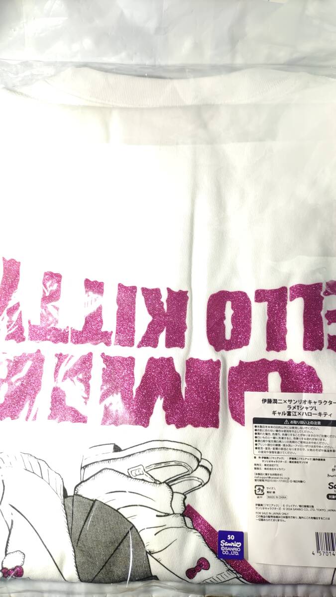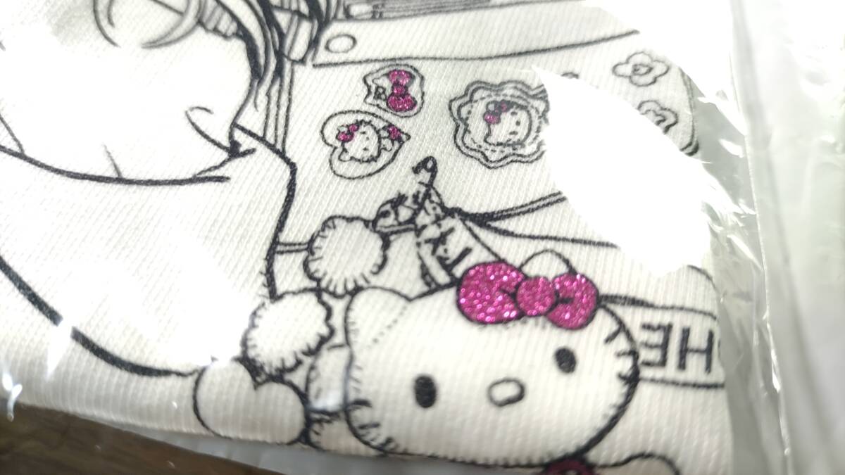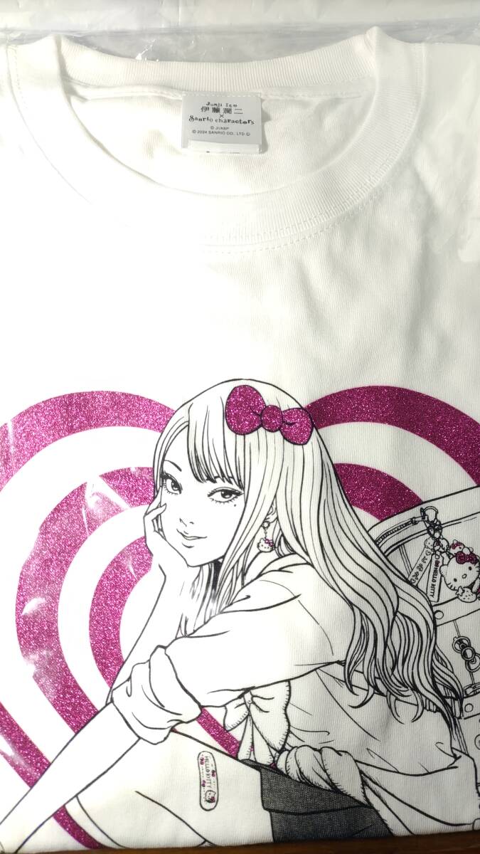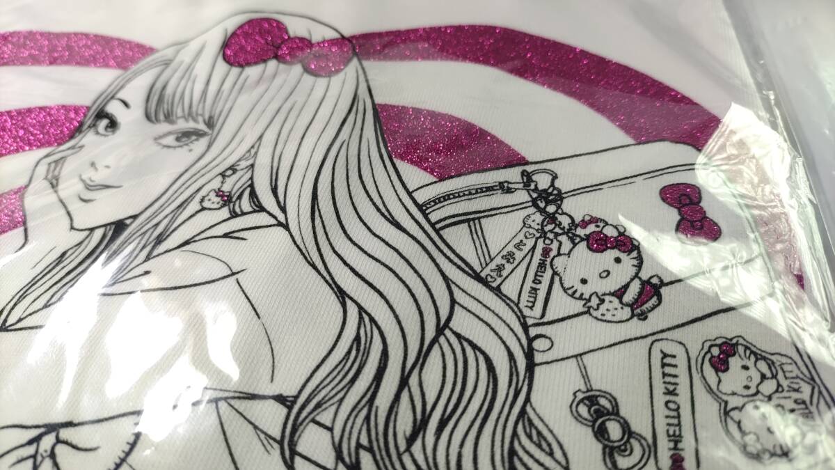 伊藤潤二先生の富江とハローキティがコラボした限定のラメTシャツの素敵なLサイズです。光を当てるとキラキラします。