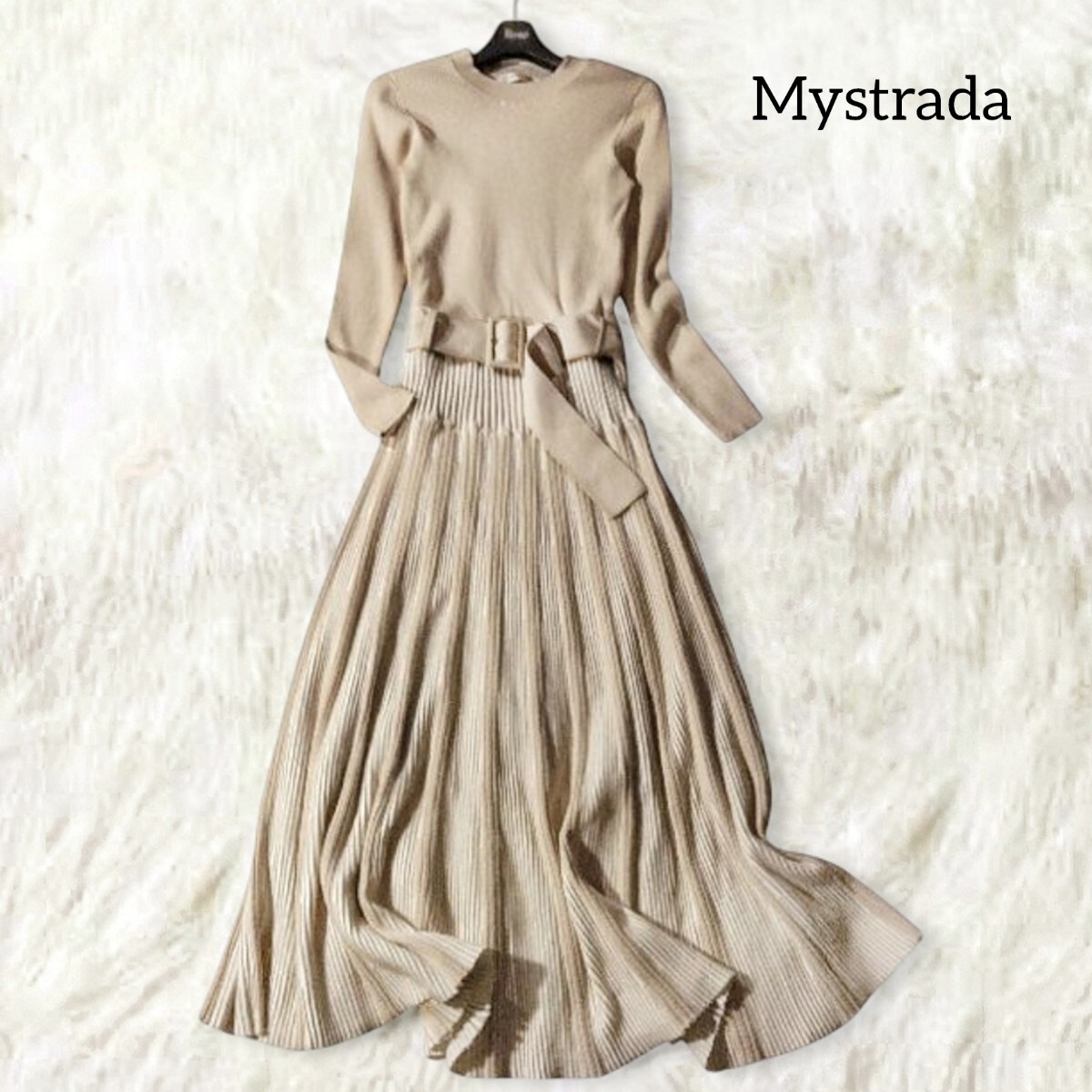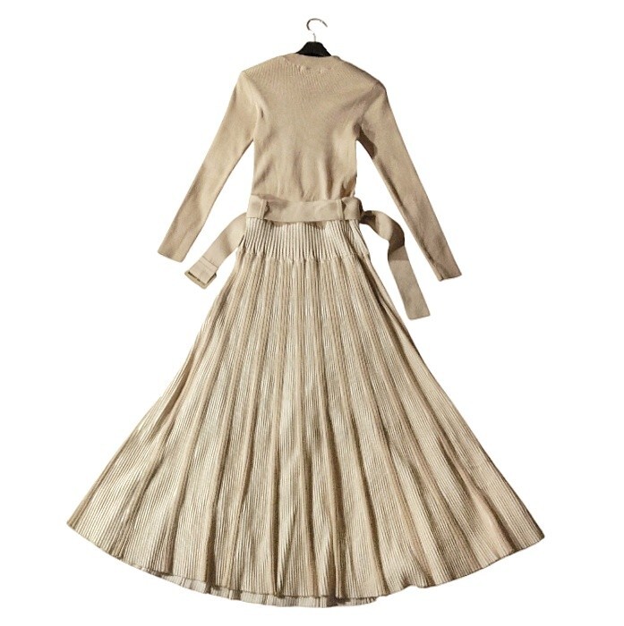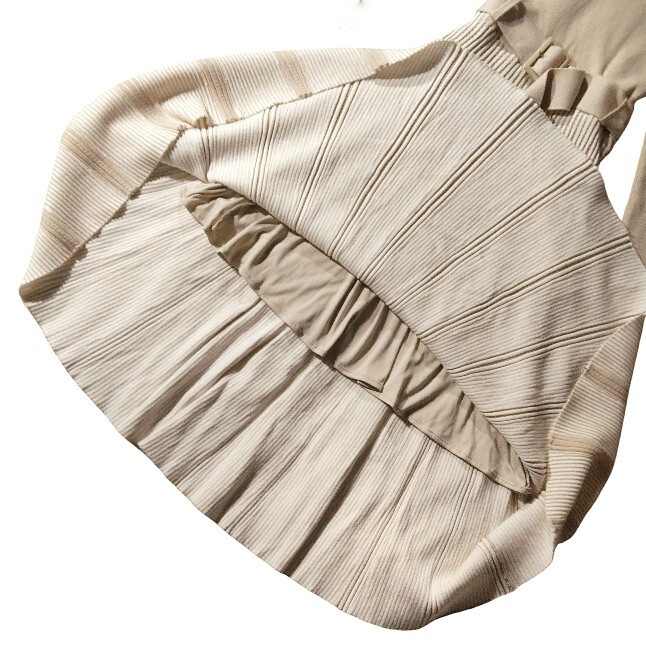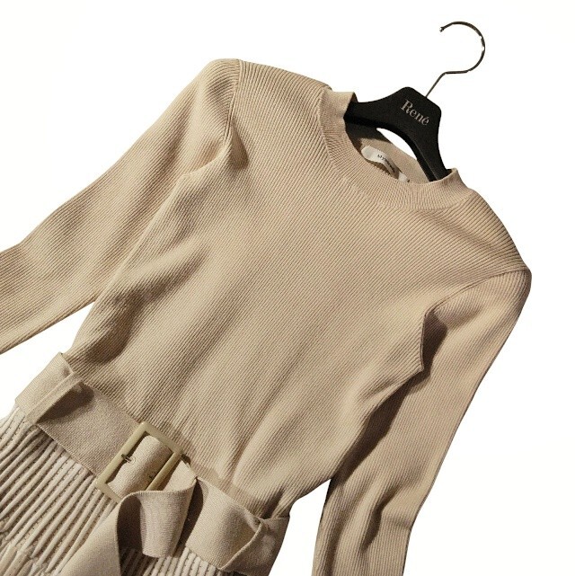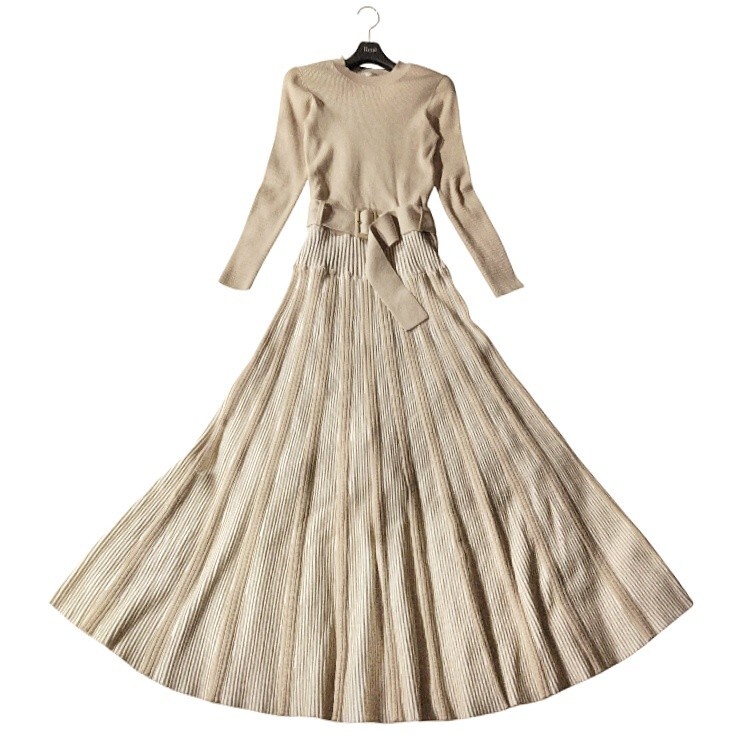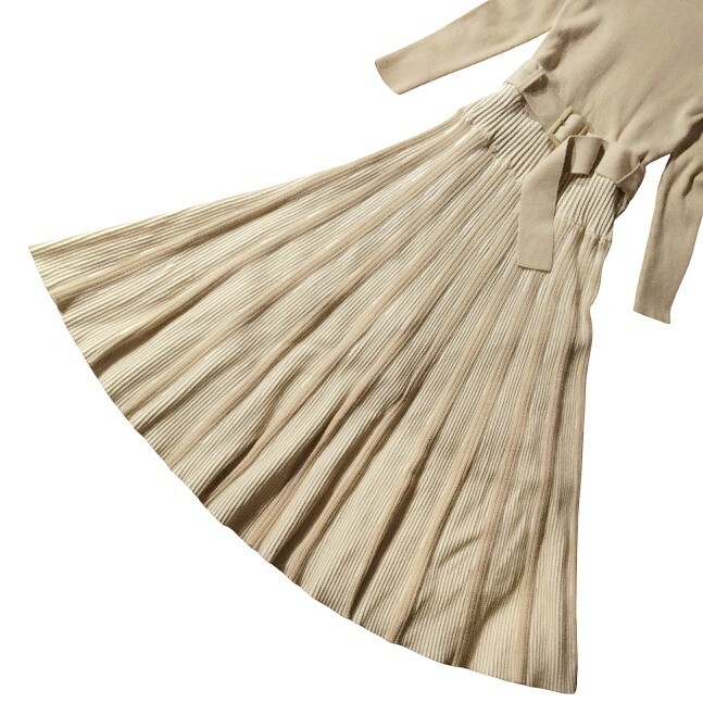 上半身はタイトなリブニット、ウエストからフレアに広がるシルエットが綺麗です