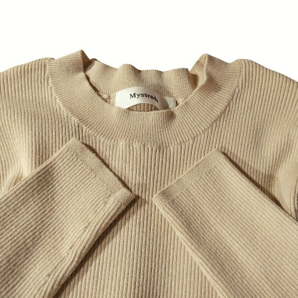 リブニット タイト クルーネック 丸首