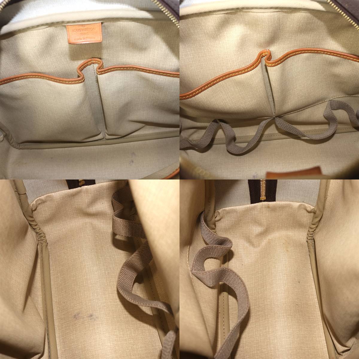 | 【詳細情報】 | 外側:角スレ縁スレ、なめし皮しみ変色、金具メッキはげが有ります。内側:小シミペンしみ有りますが、特に目立つ傷はありません。 |