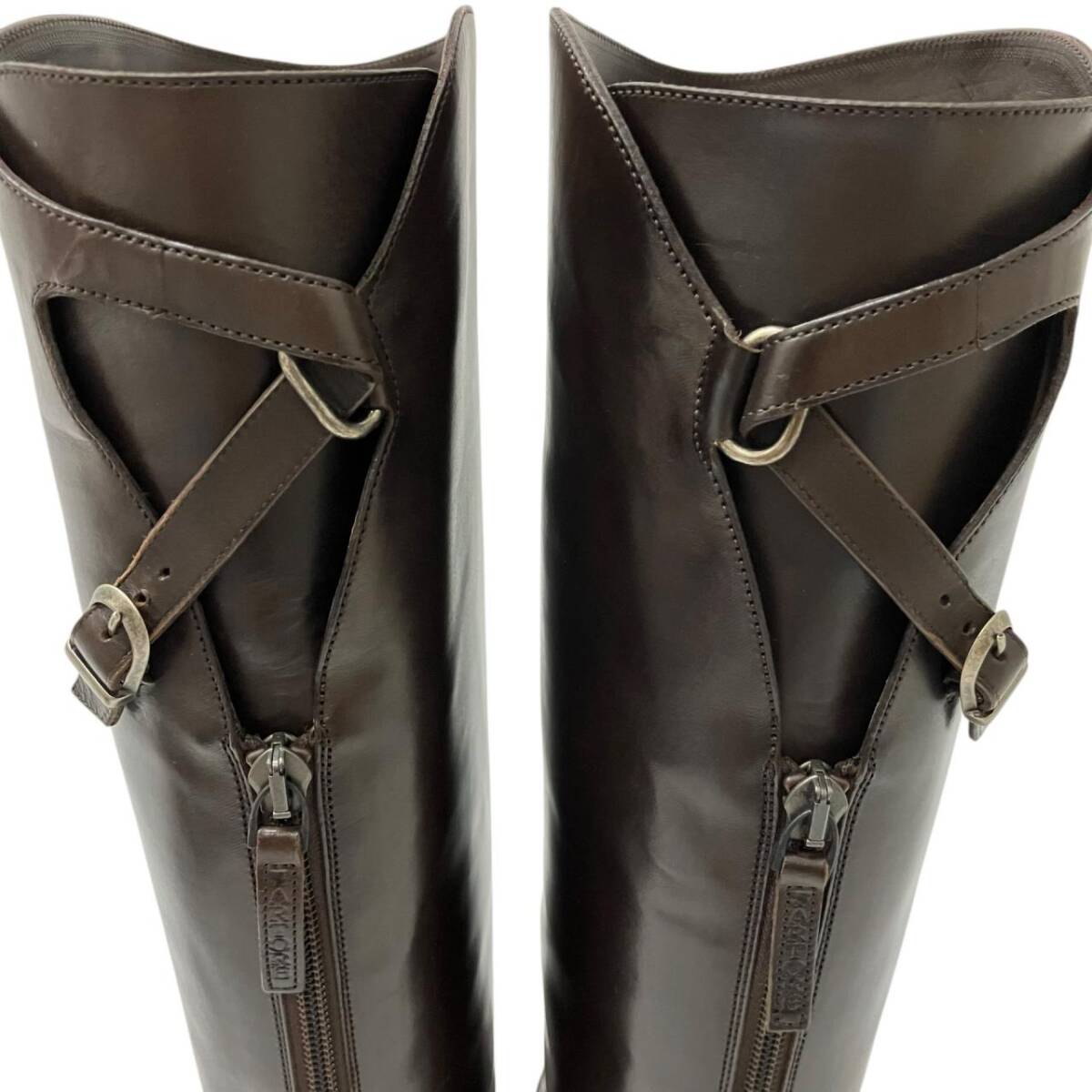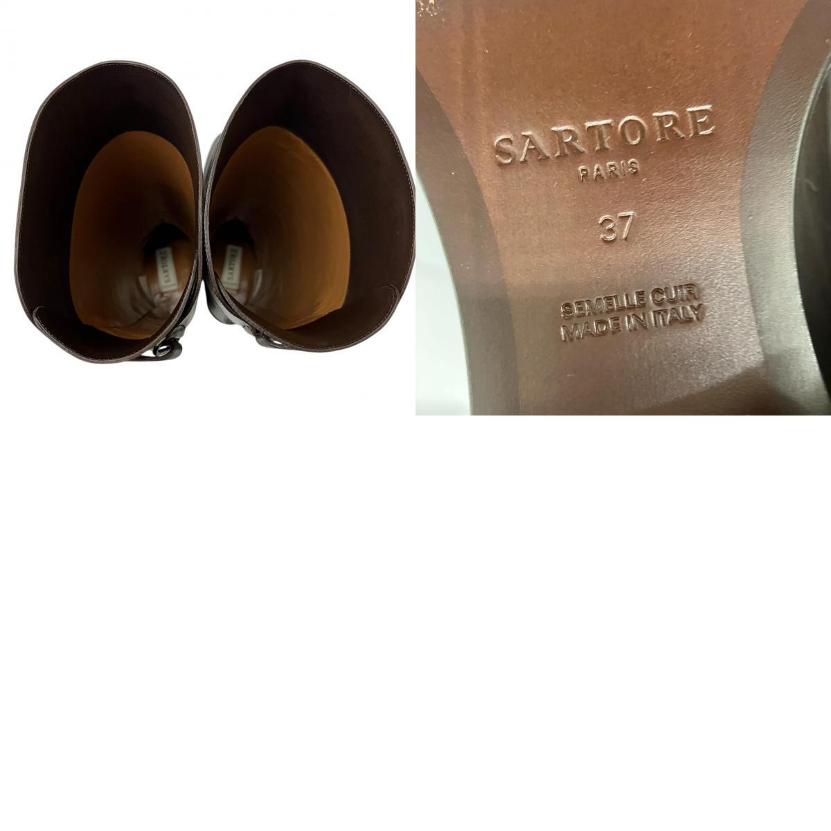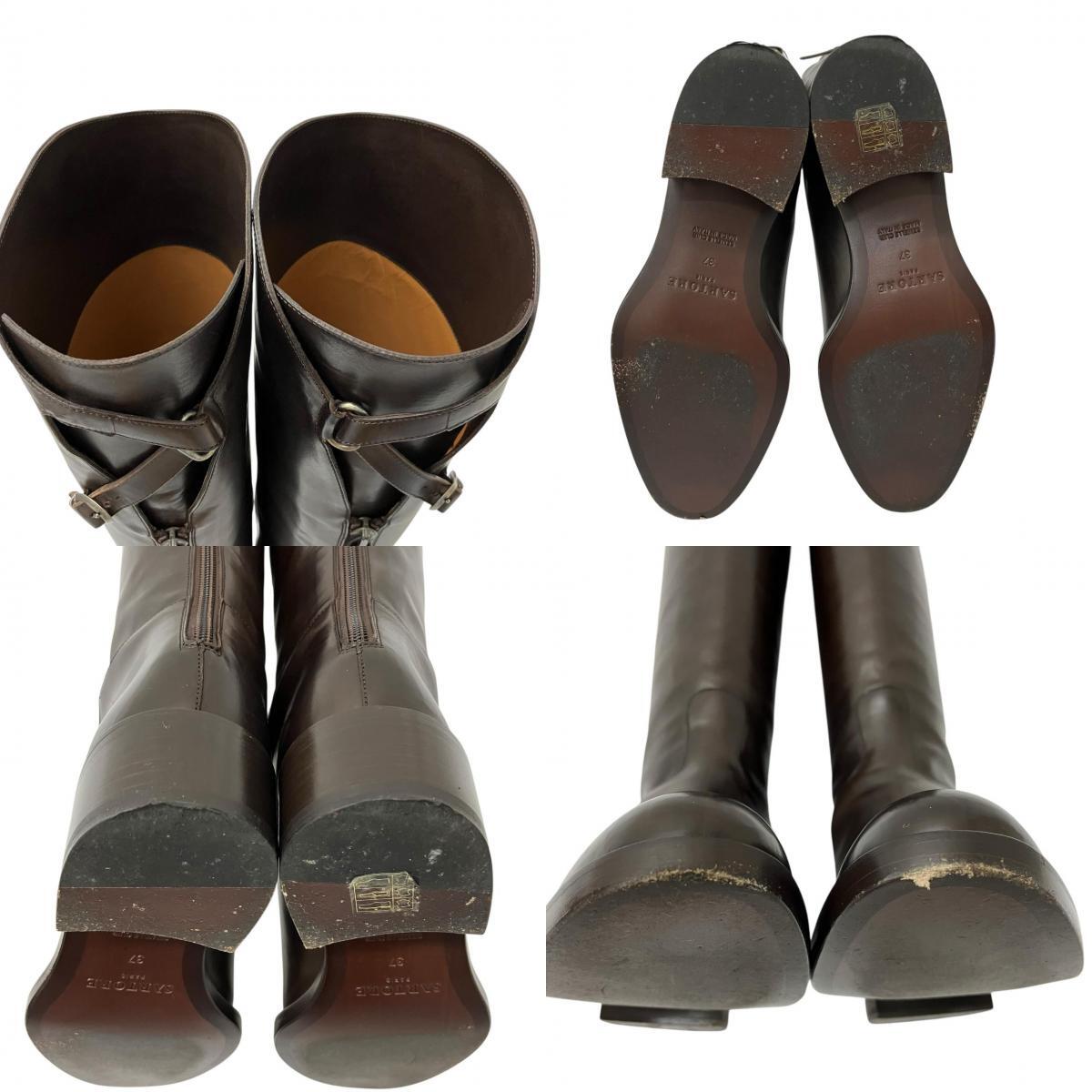 | 美品 SARTORE サルトル クロスストラップ ベルト付 バックジップ レザー ロングブーツ ブラウン 37サイズ ブーツ |