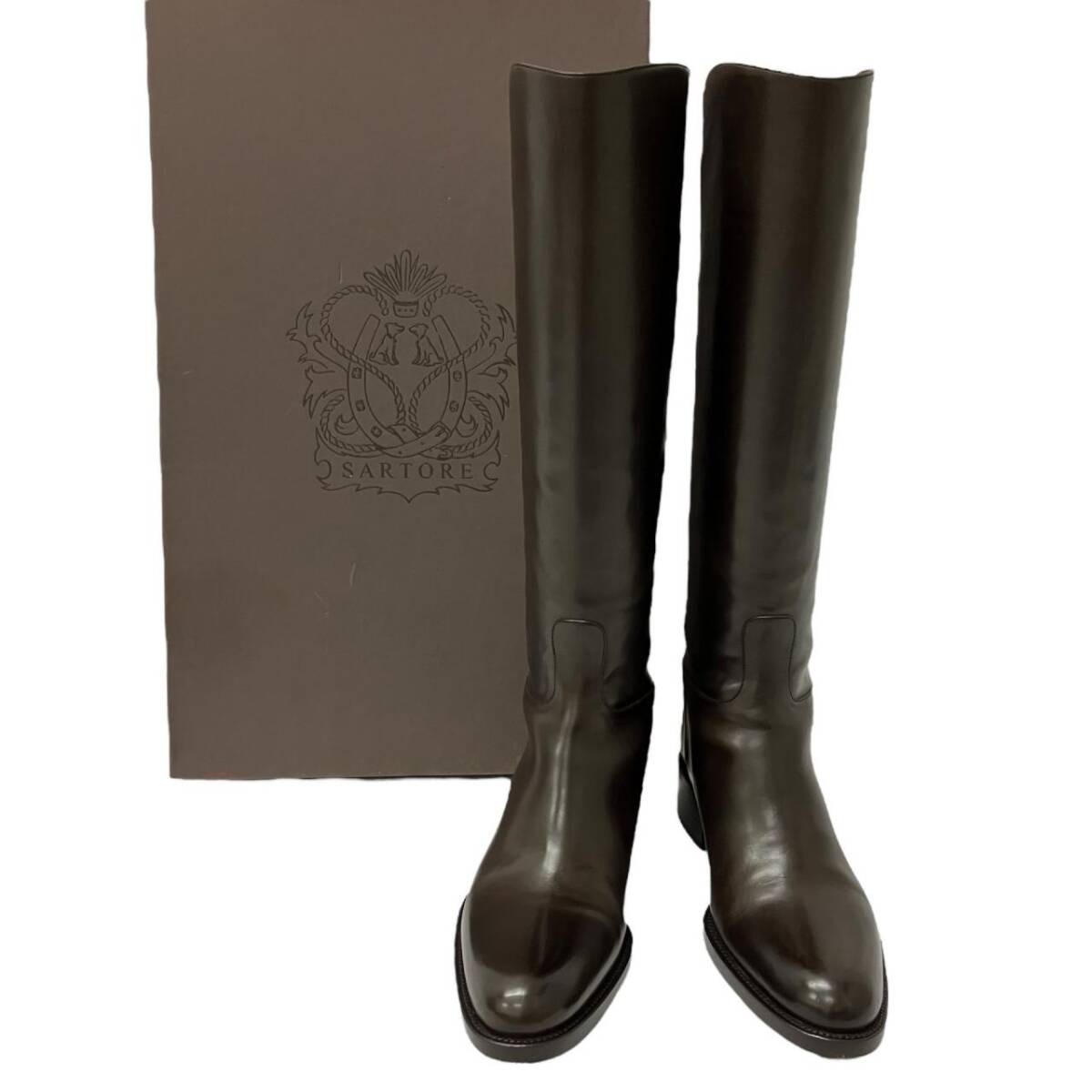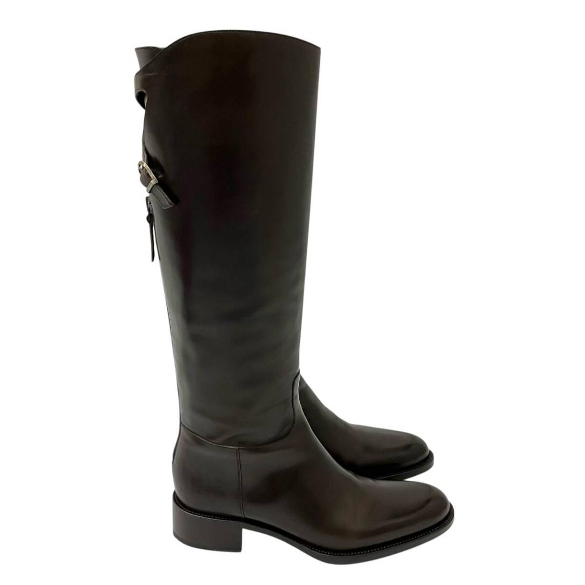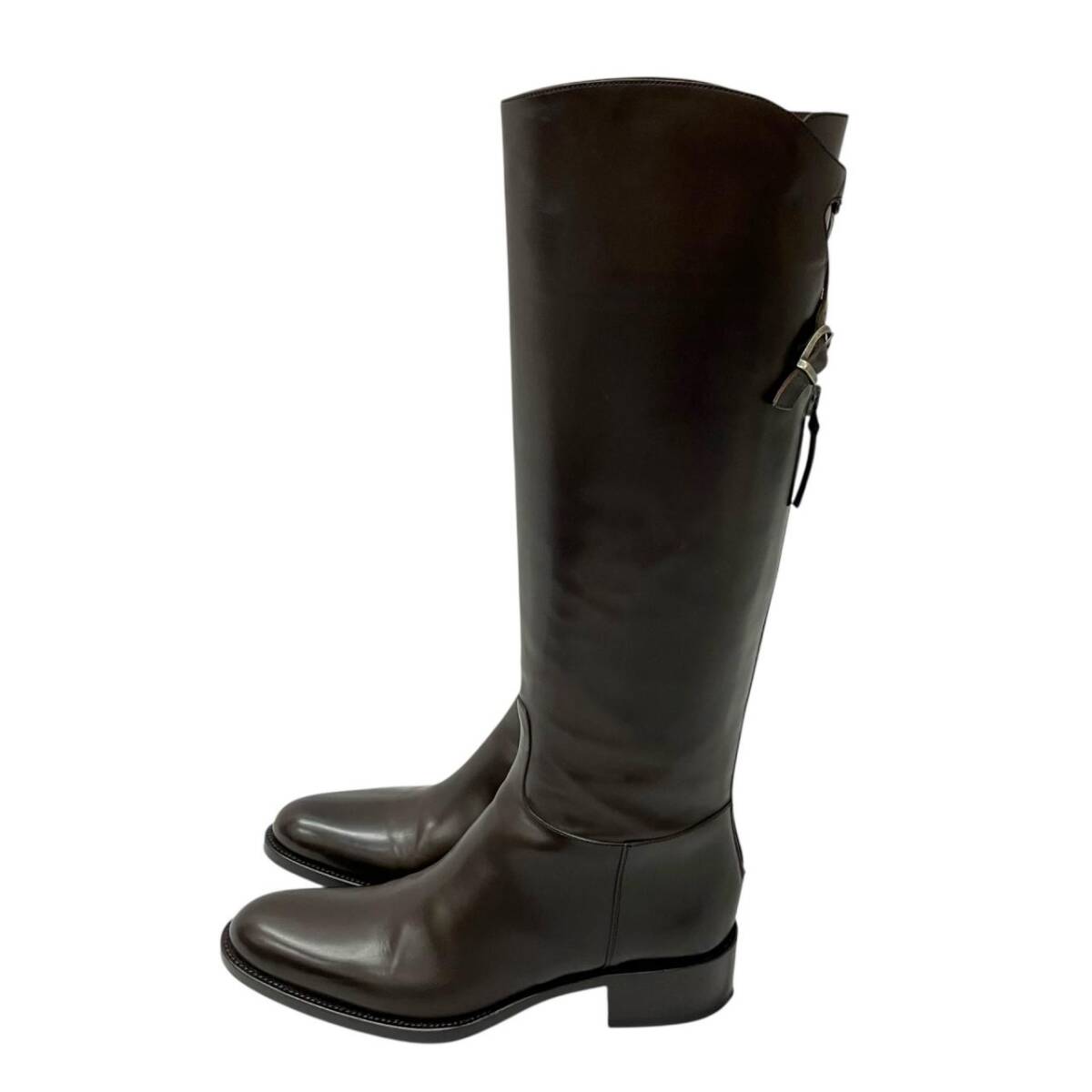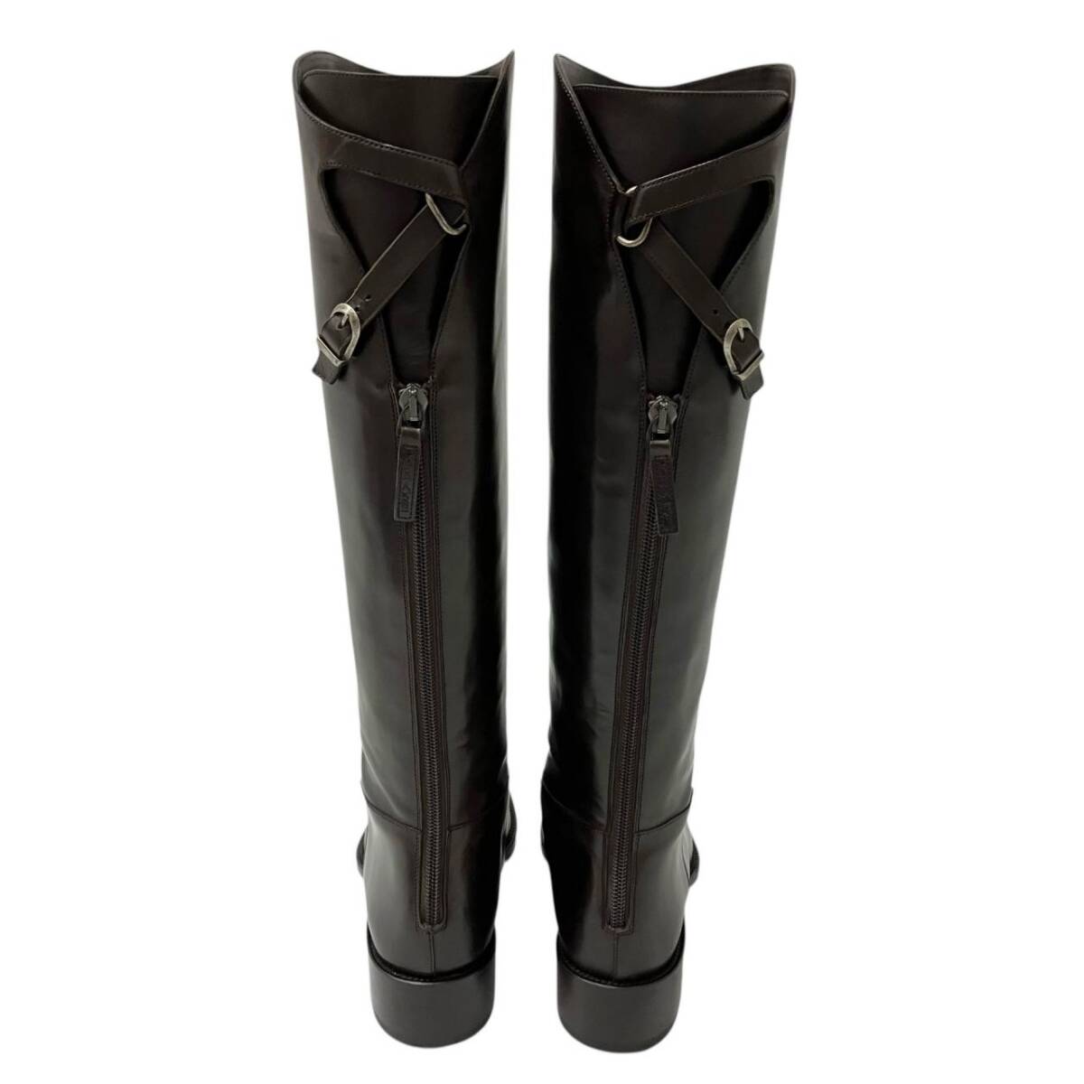 | 美品 SARTORE サルトル クロスストラップ ベルト付 バックジップ レザー ロングブーツ ブラウン 37サイズ ブーツ |