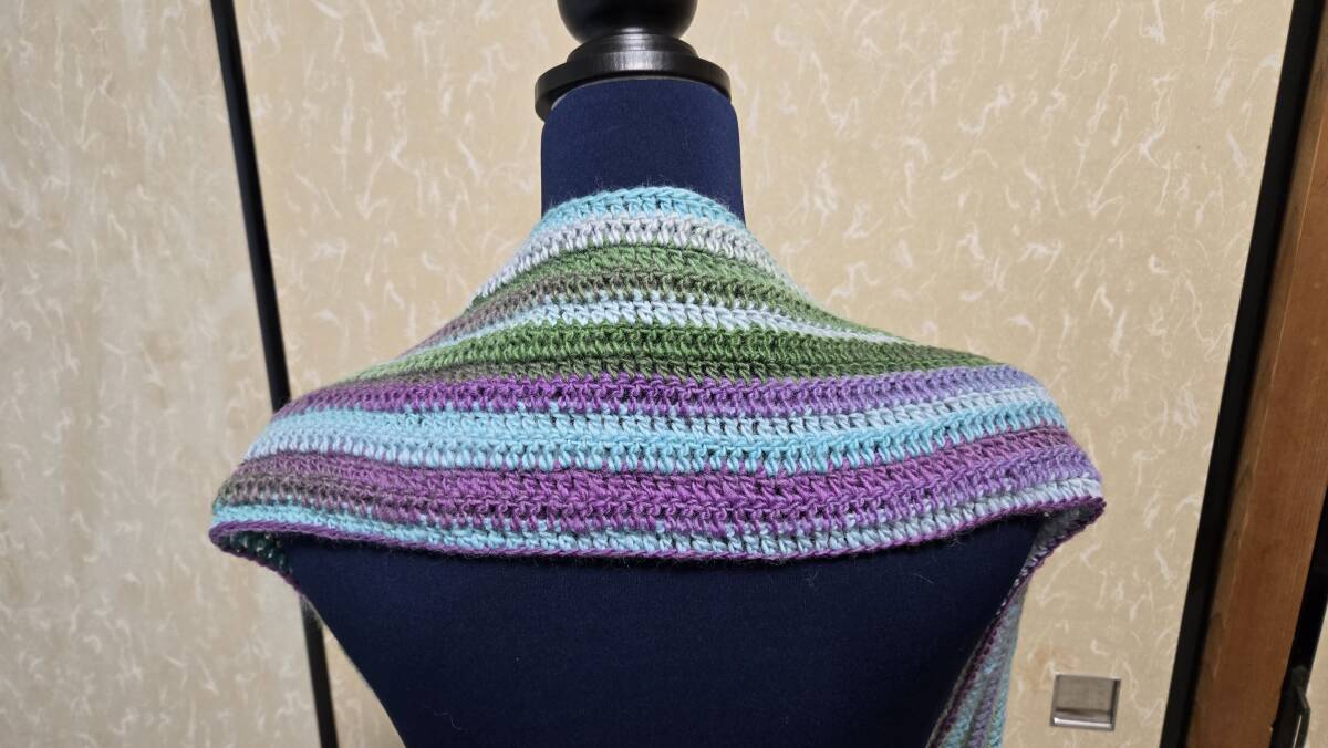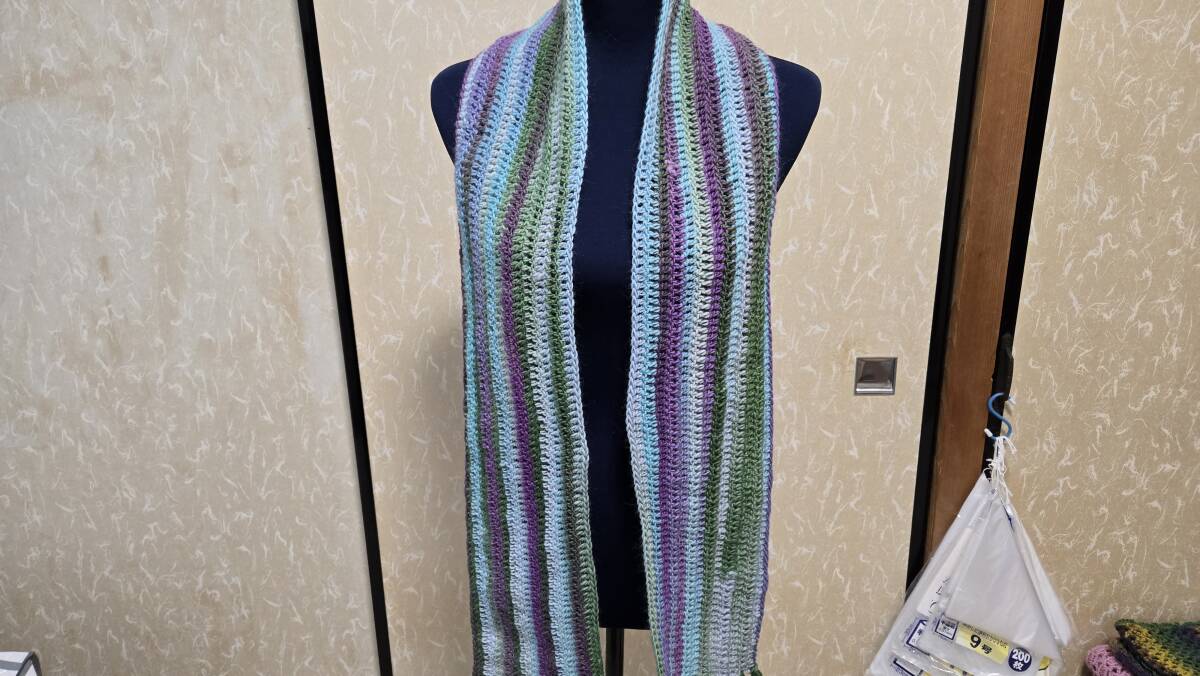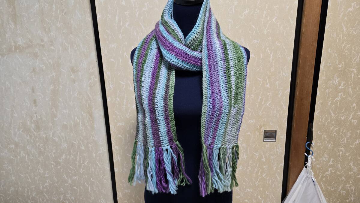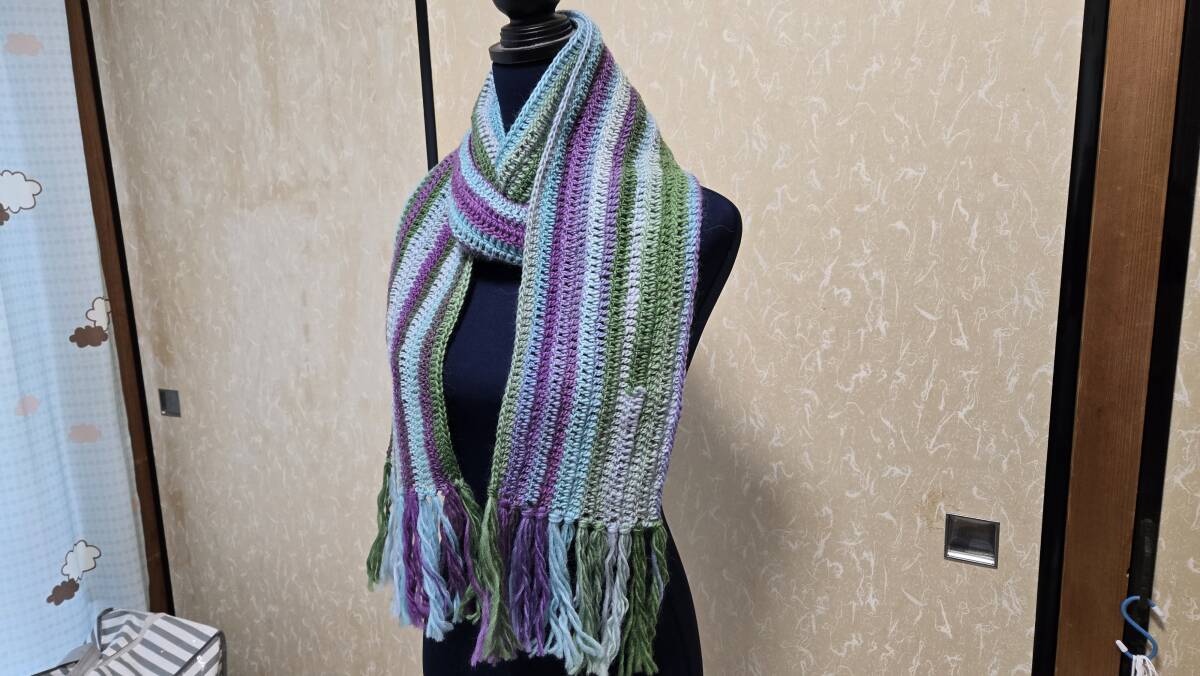 ◎新作★ウール100%★手編み★シンプルな長編みのマフラー(オーロラ)♪送料無料♪