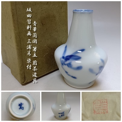 【S-199】坂田習軒画 三浦篤 染付 青華蘭図 箸立 煎茶道具 | |||