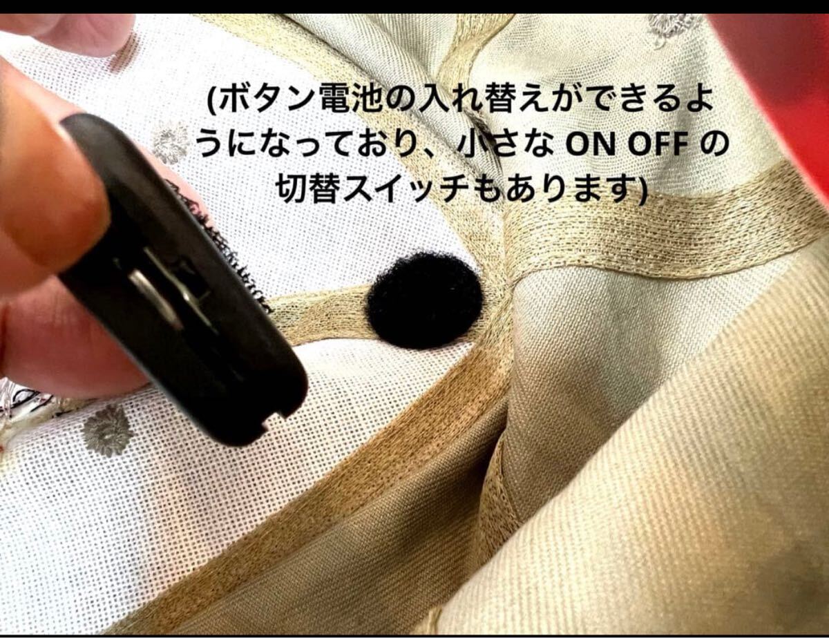 ずっとしまったままでしたが、今回出品するにあたり開いてみたら、なんと電池で刺繍の先部分に明かりがつくような設計がされている様子です。