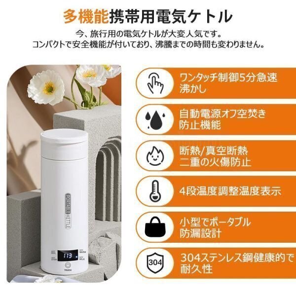 ■ポータブル電気ケトル、本品はケトルとカップの機能が1つに集まるので、持ち運びやすくて省スペースです。サイズは80*230mmで、対応の収納バッグが付属しています。本体(電源コードを含まず)の重量はたった520gで、とても軽量で便利です。またコーヒー、紅茶など作れます。旅行や出張にぴったりです。