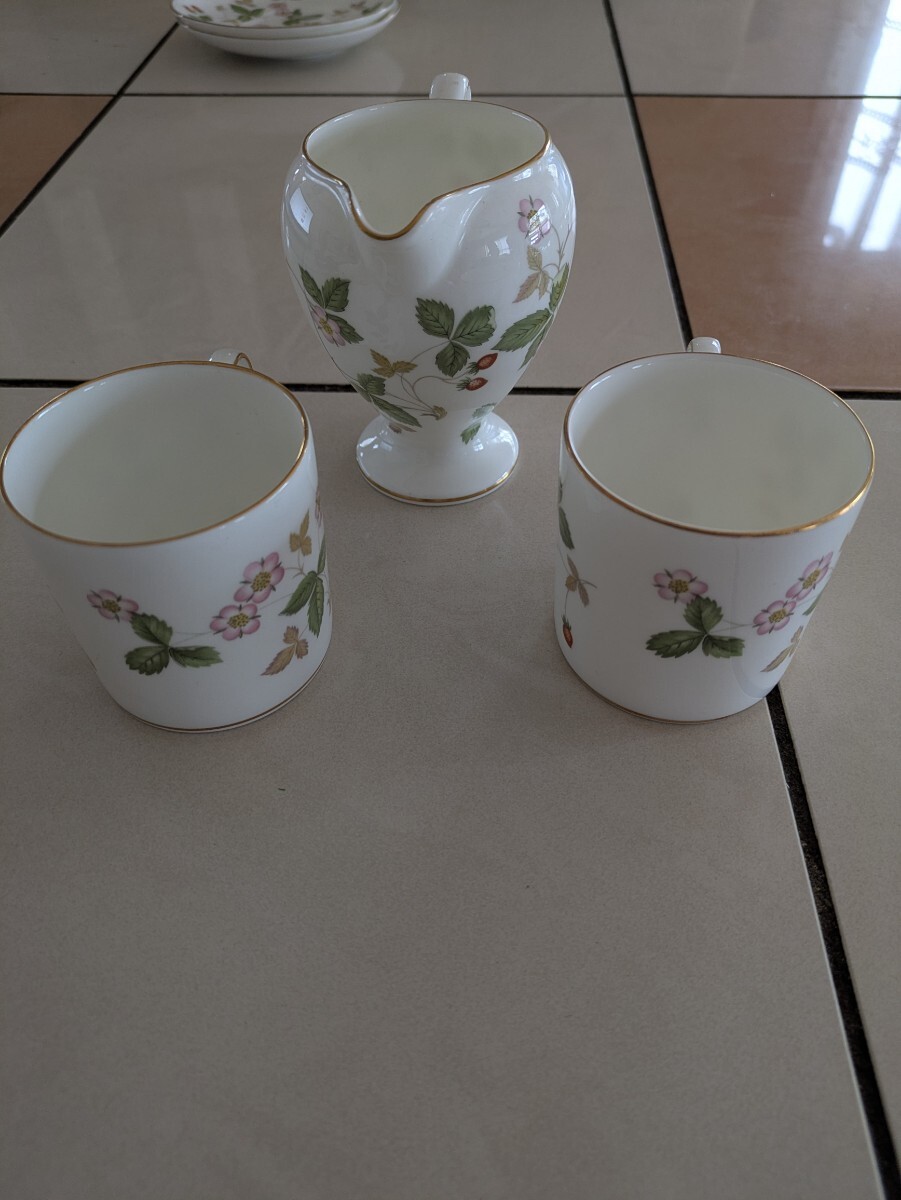 WEDGWOOD ペア 2客 セット ウェッジウッド ミルク ピッチャー カップ ソーサー ワイルドストロベリー WILD STRAWBERRY