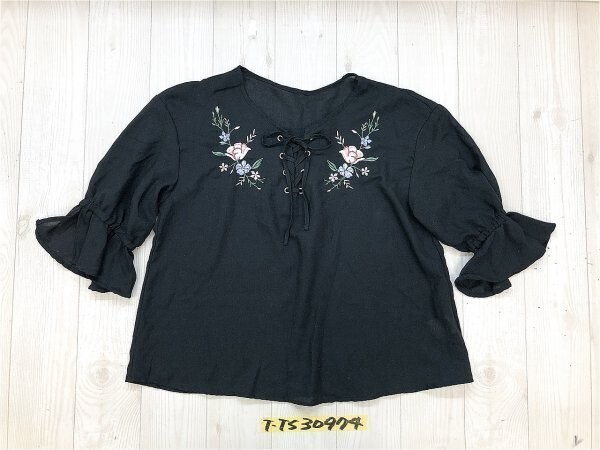 Gleeful レディース 花刺繍 レースアップ フリルスリーブ カットソー M 黒 です。