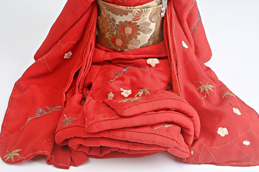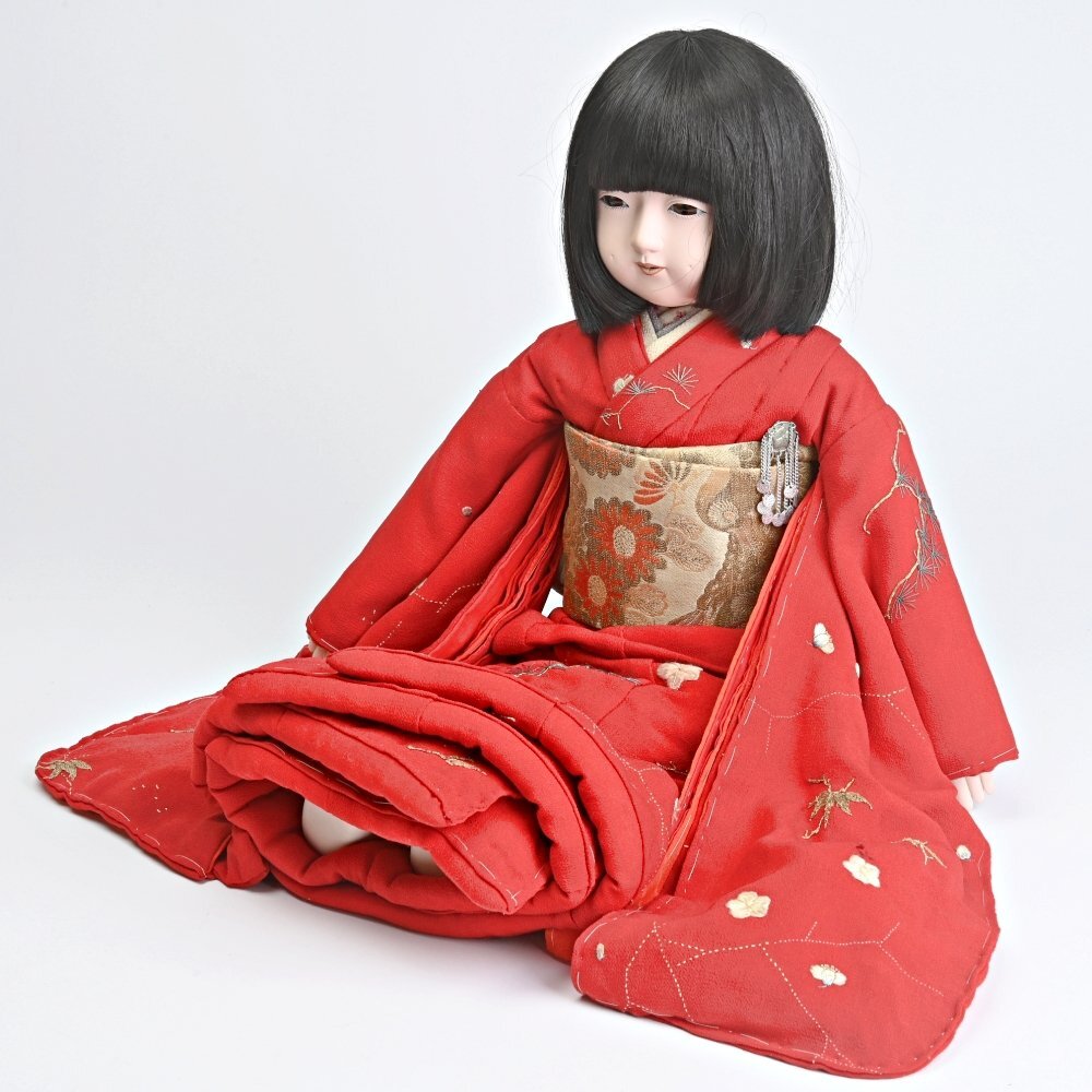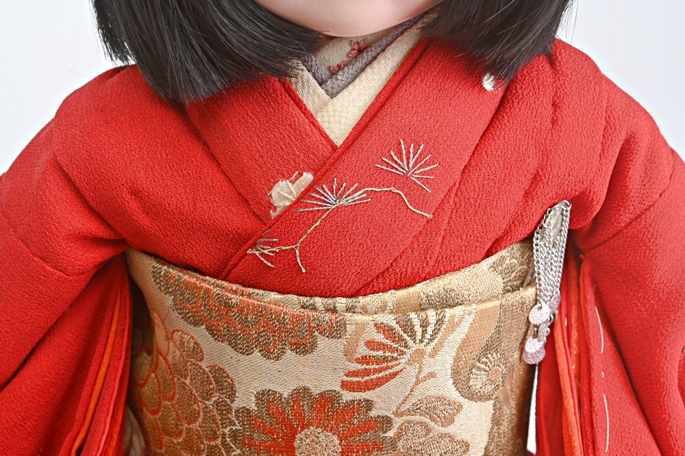 147017◆市松人形 女の子 60cm 松竹梅縮緬地◆日本人形 h