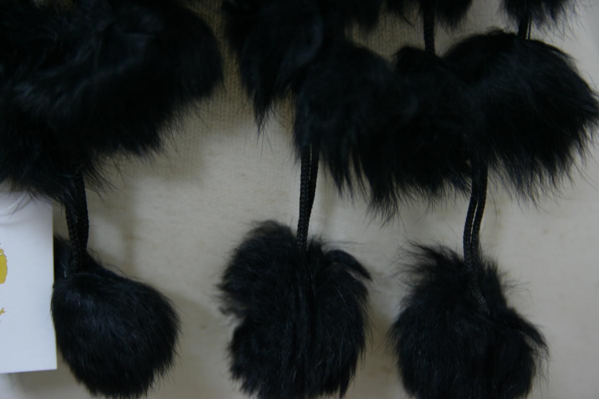 ・1玉の直径が約3cmの天然ラビットファーを4連のボンボンにしてつないだマフラーです。