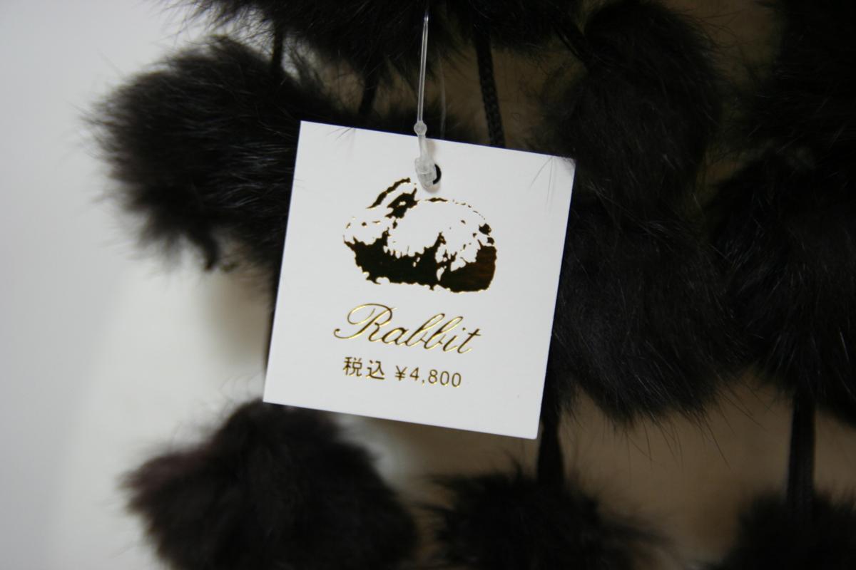 画像にてご覧いただける通り定価4800円のタグ付きで、主に百貨店や専門店で取扱っている、高級感溢れる天然ラビットボンボンの4連ファーマフラーです。なお、一点一点の商品を大切に袋入りの状態にて保管しておりますので、多少の折りシワにつきましてはご了承下さいませ。