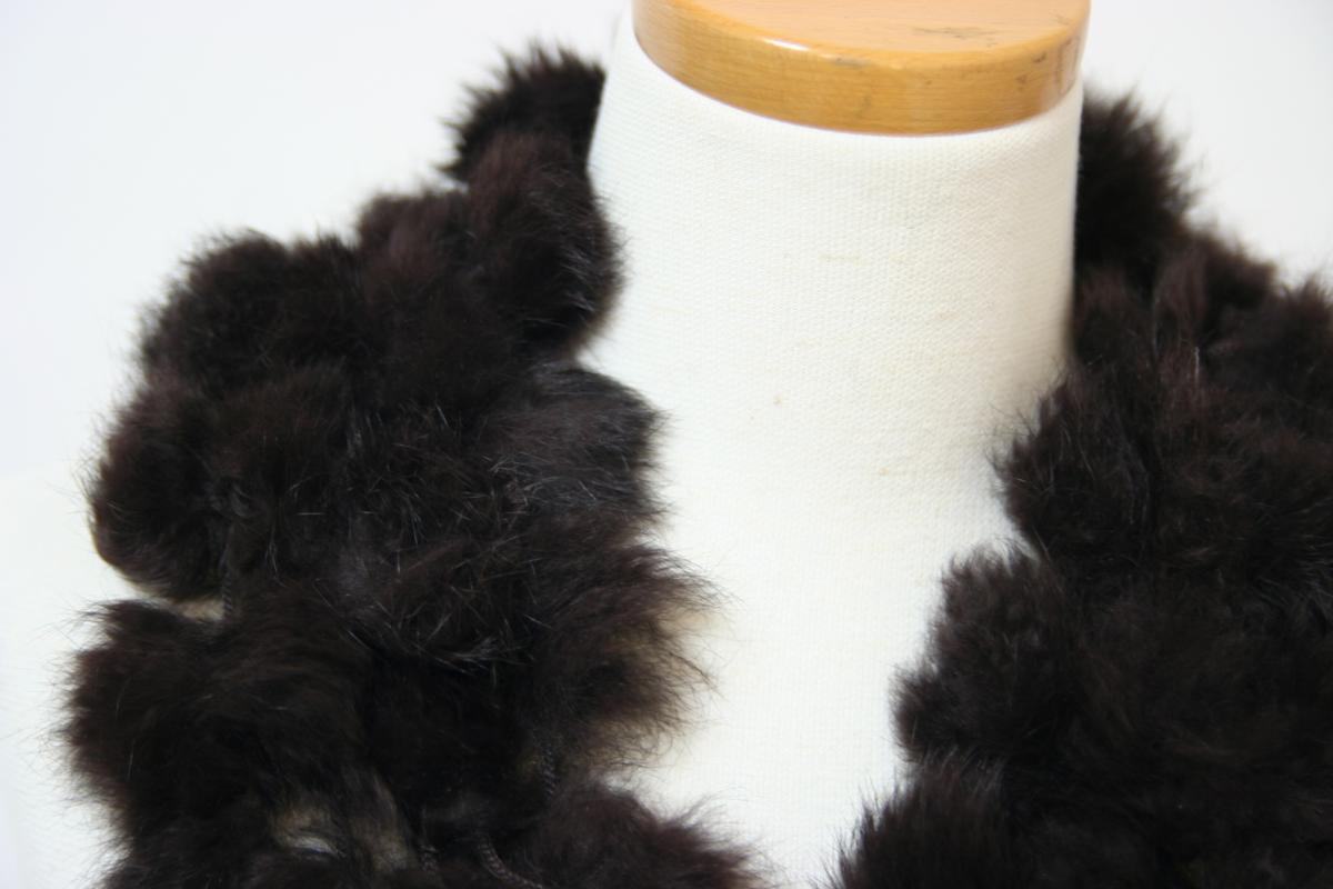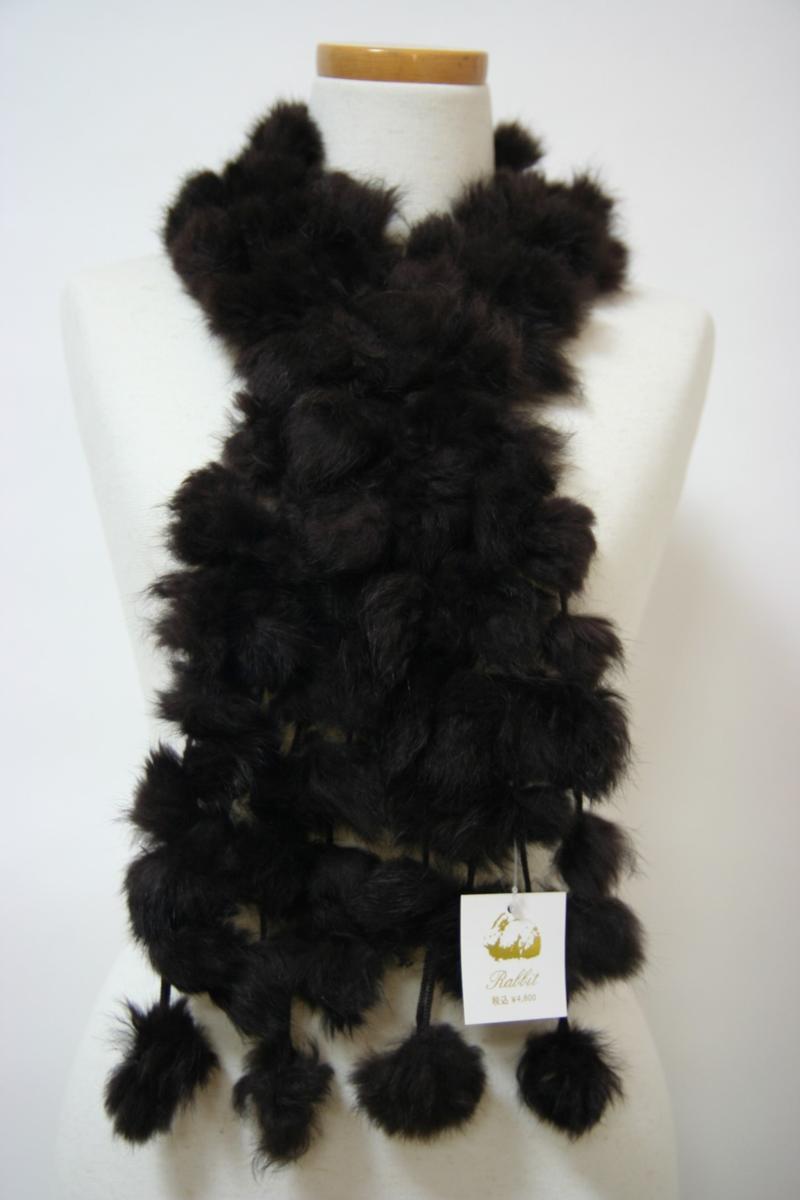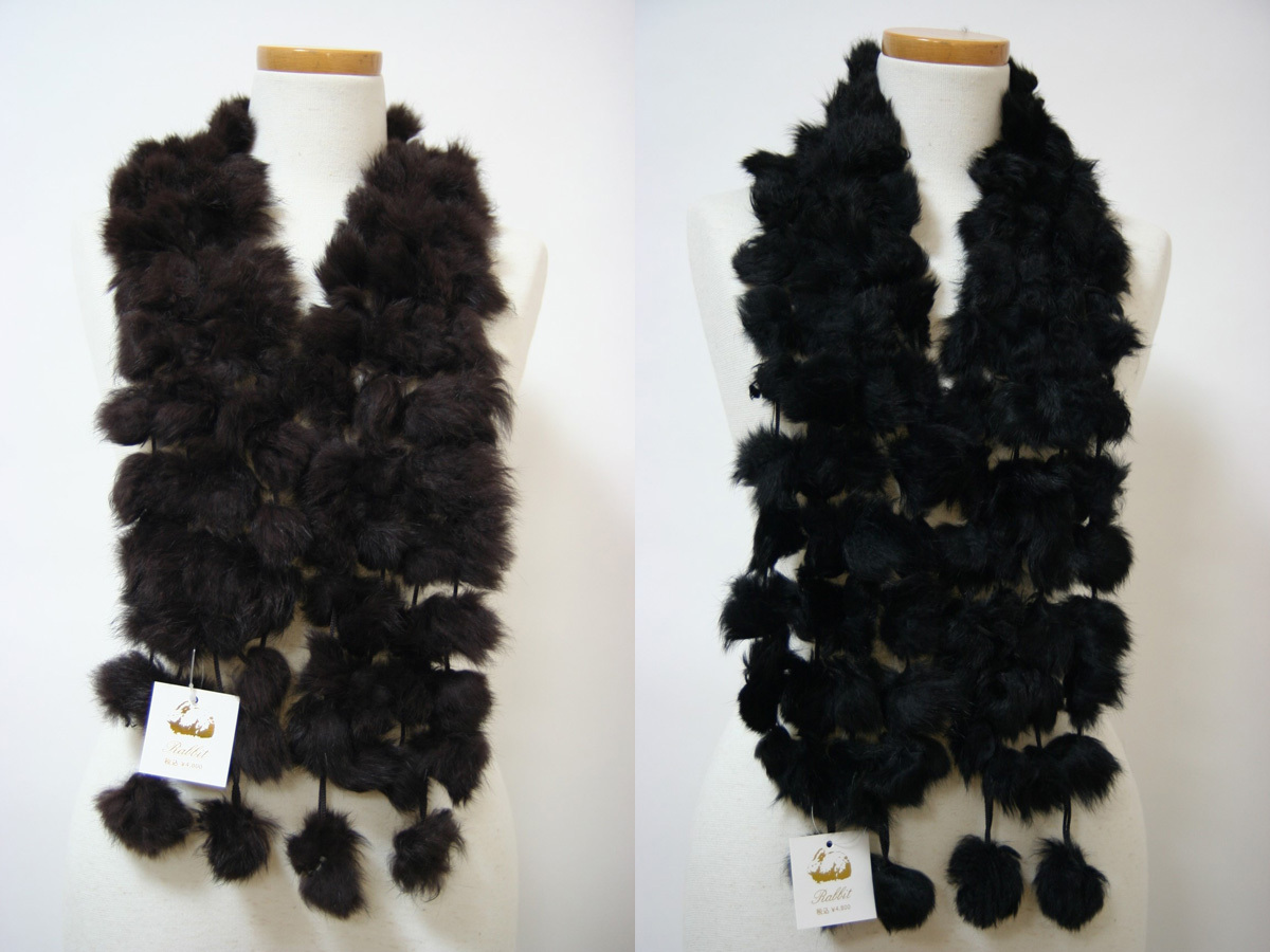 送料無料◆2色組◆4連ボンボン◆定価4800円タグ付き◆プレーンカラー◆天然ラビット◆ファーマフラー(チョコレートブラウン&ブラック)