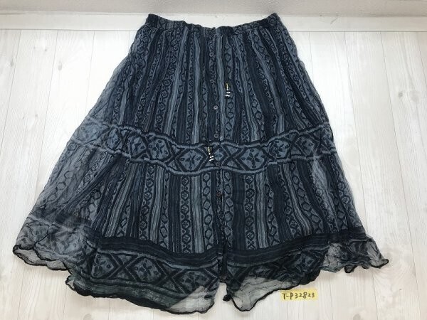 レディース インド製 総柄 フロントボタン コットンボイルスカート M-Lくらい ダークグリーン×グレー です。