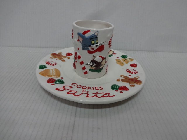 トム&ジェリー ソーサー&コップ クリスマス 陶器製 ワーナー 食器 未使用品 デッドストック 綺麗です。皿約22cm コップ約9cm