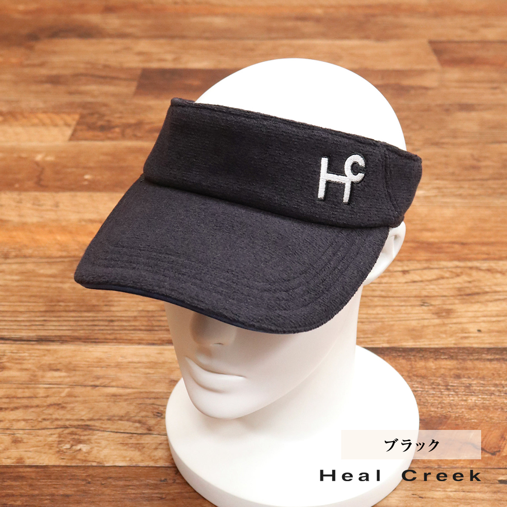 1円/Heal Creek/サンバイザー 003-59001 ロゴマーク サガラ刺繍 メランジフリース ゴルフ ヒールクリーク 新品/黒/ブラック/ki234/