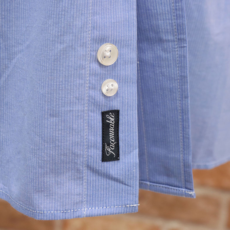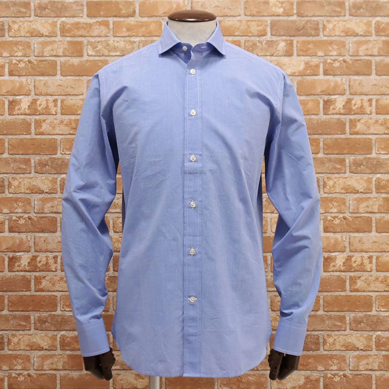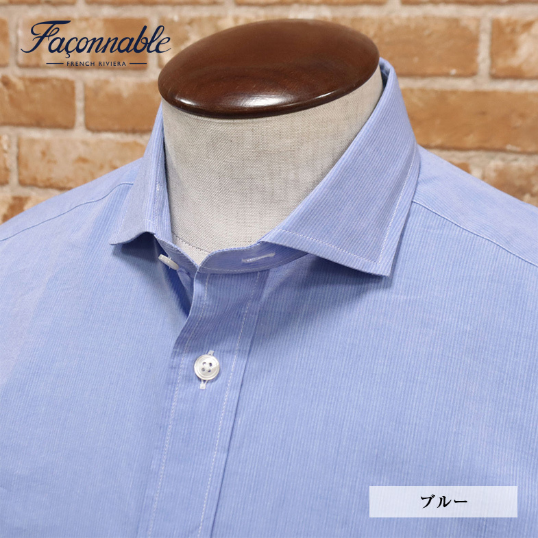 1円/Faconnable/XLサイズ/シャツ さらっと綿 ストライプ ホリゾンタル襟 エレガント 長袖 新品/青/ブルー/me148/