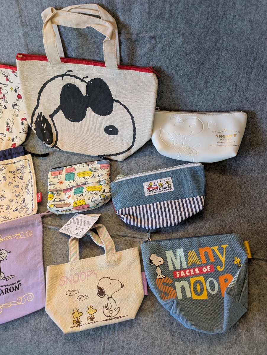 かわいいスヌーピーのバック等のセットです、今は出に入らない物多数です。