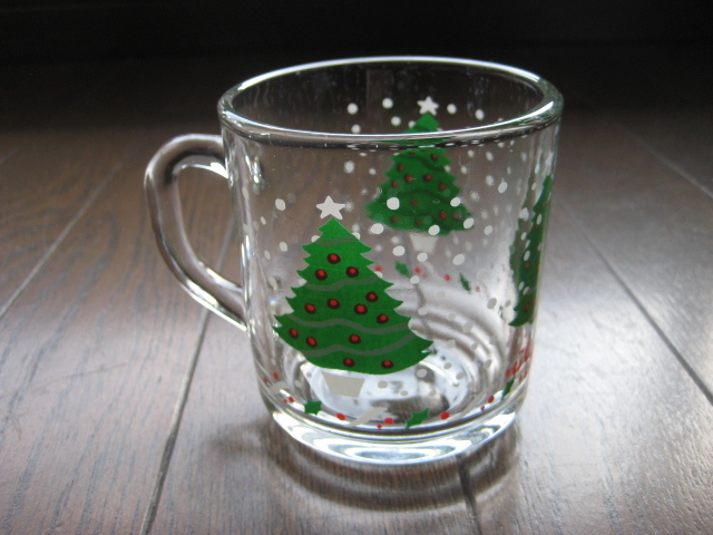 ☆美品 ファイヤーキング ガラスマグ マグカップ クリスマスツリー 雪